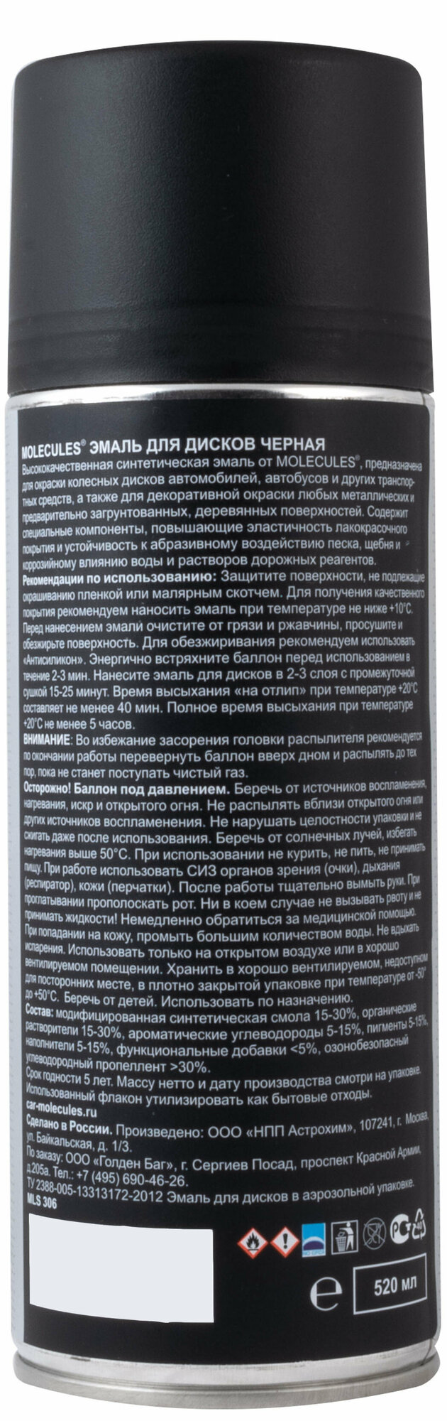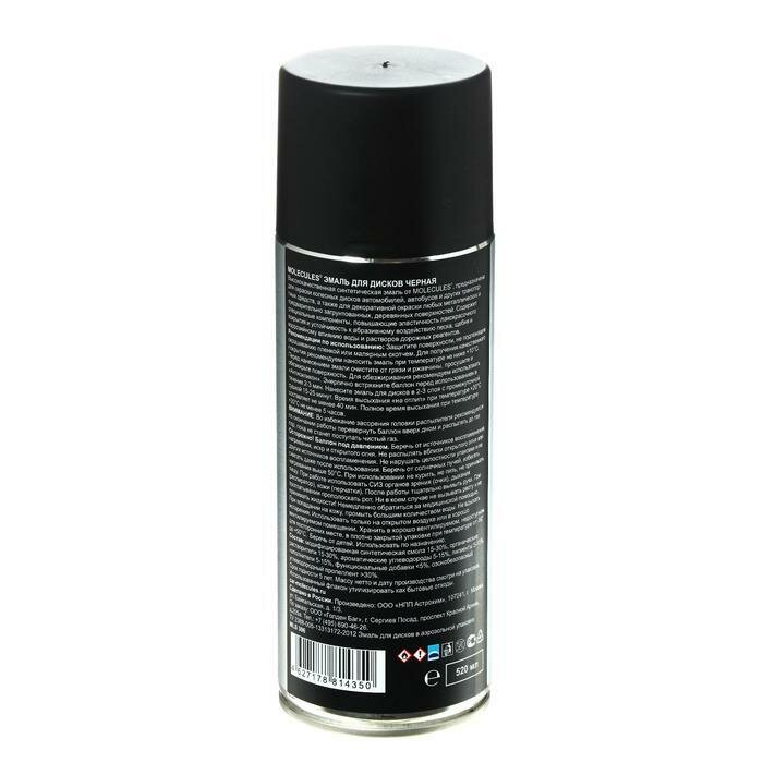 Эмаль для дисков «Molecules» — средство, предназначенное для окраски колесных дисков автомобилей, автобусов и других транспортных средств, а также для декоративной окраски любых металлических и предварительно загрунтованных, деревянных поверхностей.