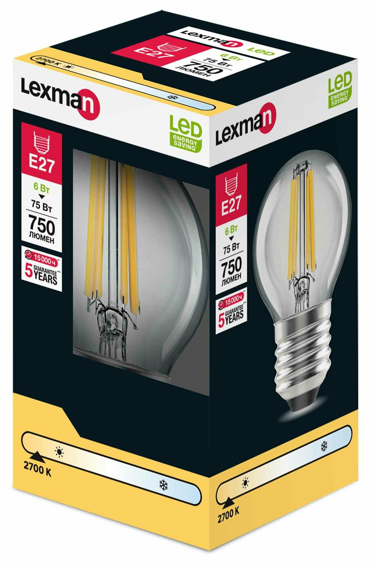 Лампа светодиодная Lexman E27 220-240 В 6 Вт шар прозрачная 750 лм теплый белый свет