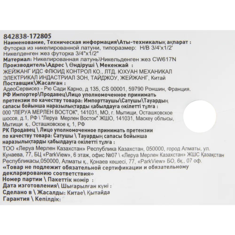 Футорка Equation наружная-внутренняя резьба 3/4x1/2" никелированная латунь