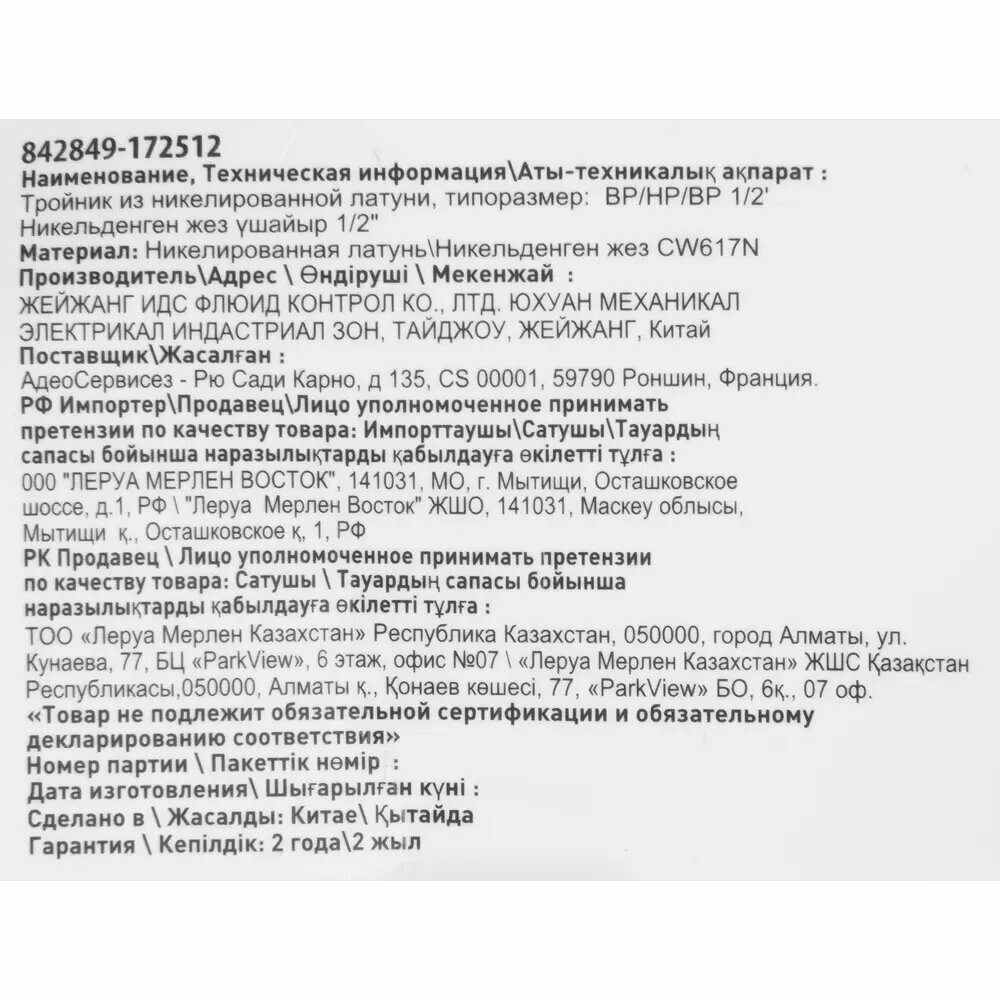 Тройник Equation внутренняя-наружная-внутренняя резьба 1/2" никелированная латунь