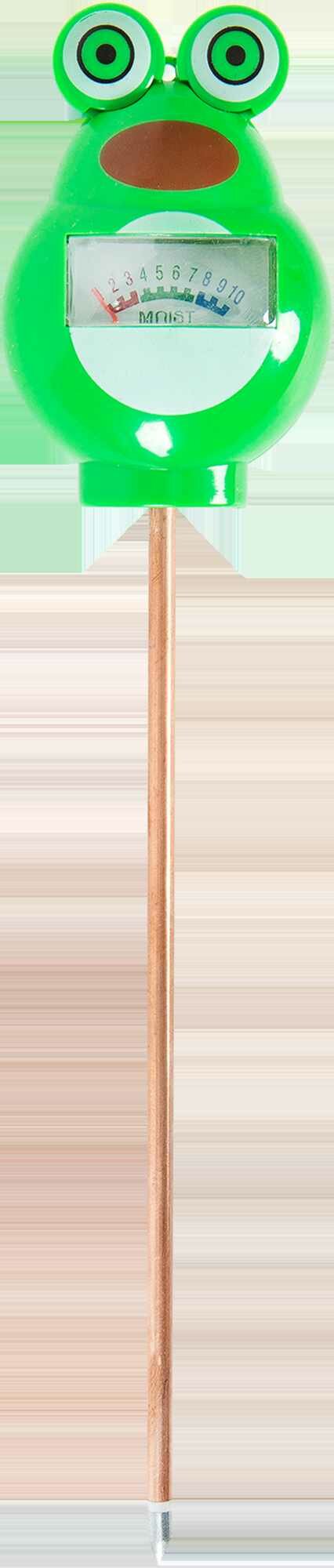 Измеритель влажности почвы «Лягушонок» поможет быстро определить влажность грунта на вашем садовом участке. Пользоваться им легко: поместите датчик в грунт, и стрелка на цветной шкале покажет уровень влаги. Корпус изделия изготовлен из прочного пластика. Оригинальный дизайн органично дополнит ландшафт.