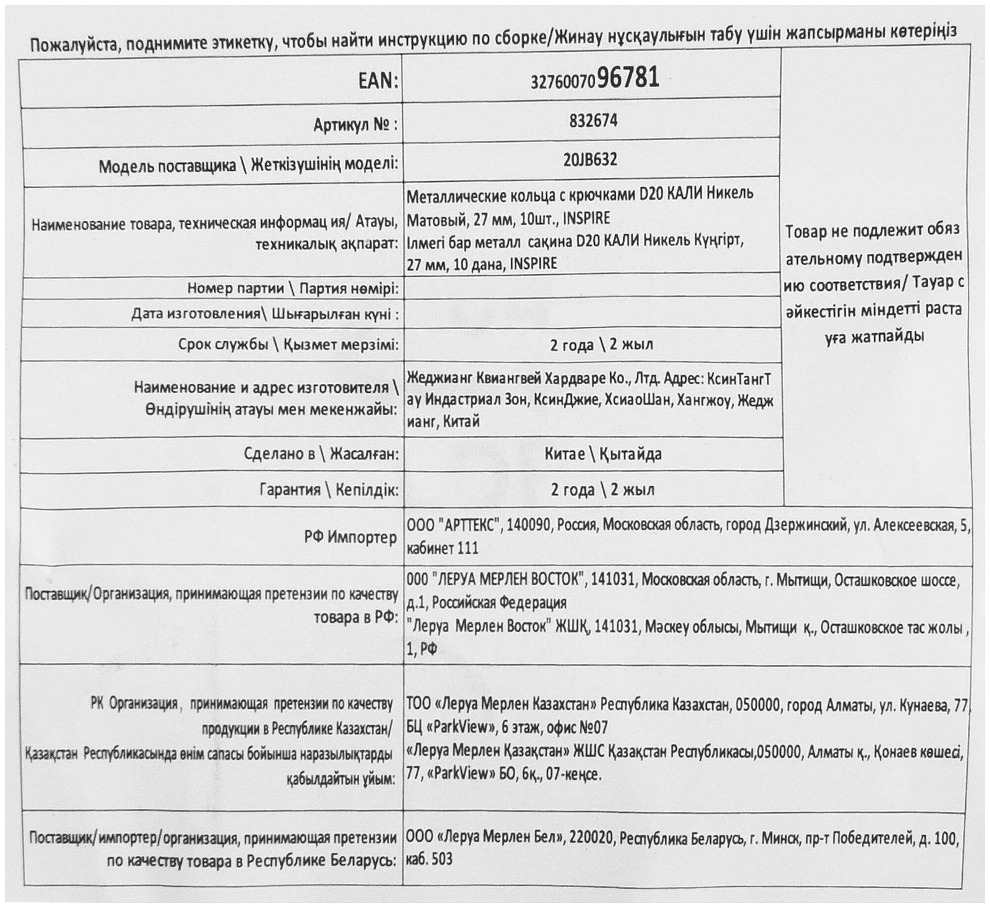 Сервис сравнения цен СкидкаГИД предлагает сравнить цены на товар «Кольцо с крючком Inspire металл цвет никель 2 см 10 шт.»