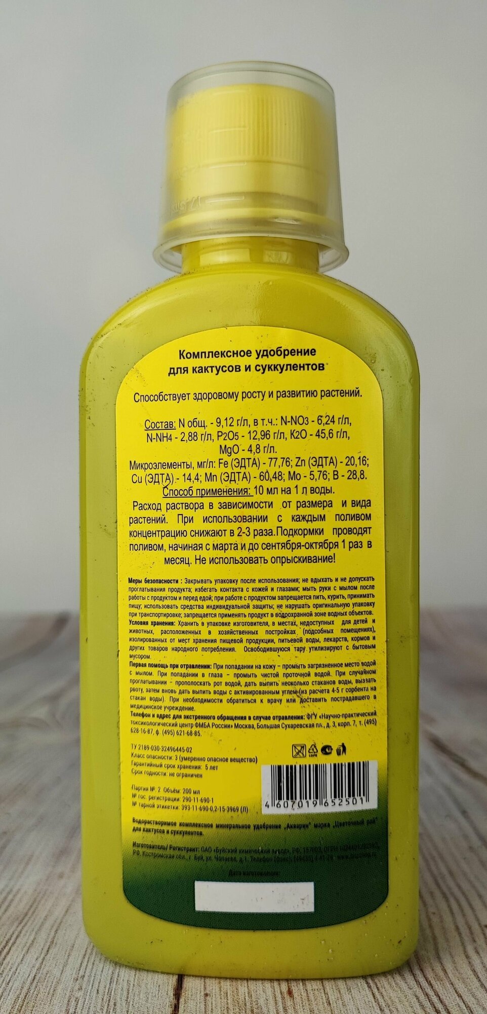 | Состав | азот, фосфор (P2O5), калий (K2O), магний, железо, цинк, медь, марганец, молибден, бор |