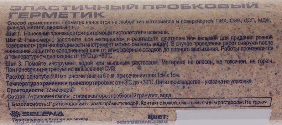 | Применение продукта | герметизация стыков венцов бревенчатого или брусчатого дома, заделка трещин в брёвнах, уплотнение порогов и примыканий к стенам при укладке паркетной доски. |