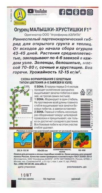 На сегодняшний день товар «Семена Огурец «Малышки-хрустишки» F1 0.25 г Аэлита» можно купить с кешбеком в 1 магазине: Яндекс.Маркет