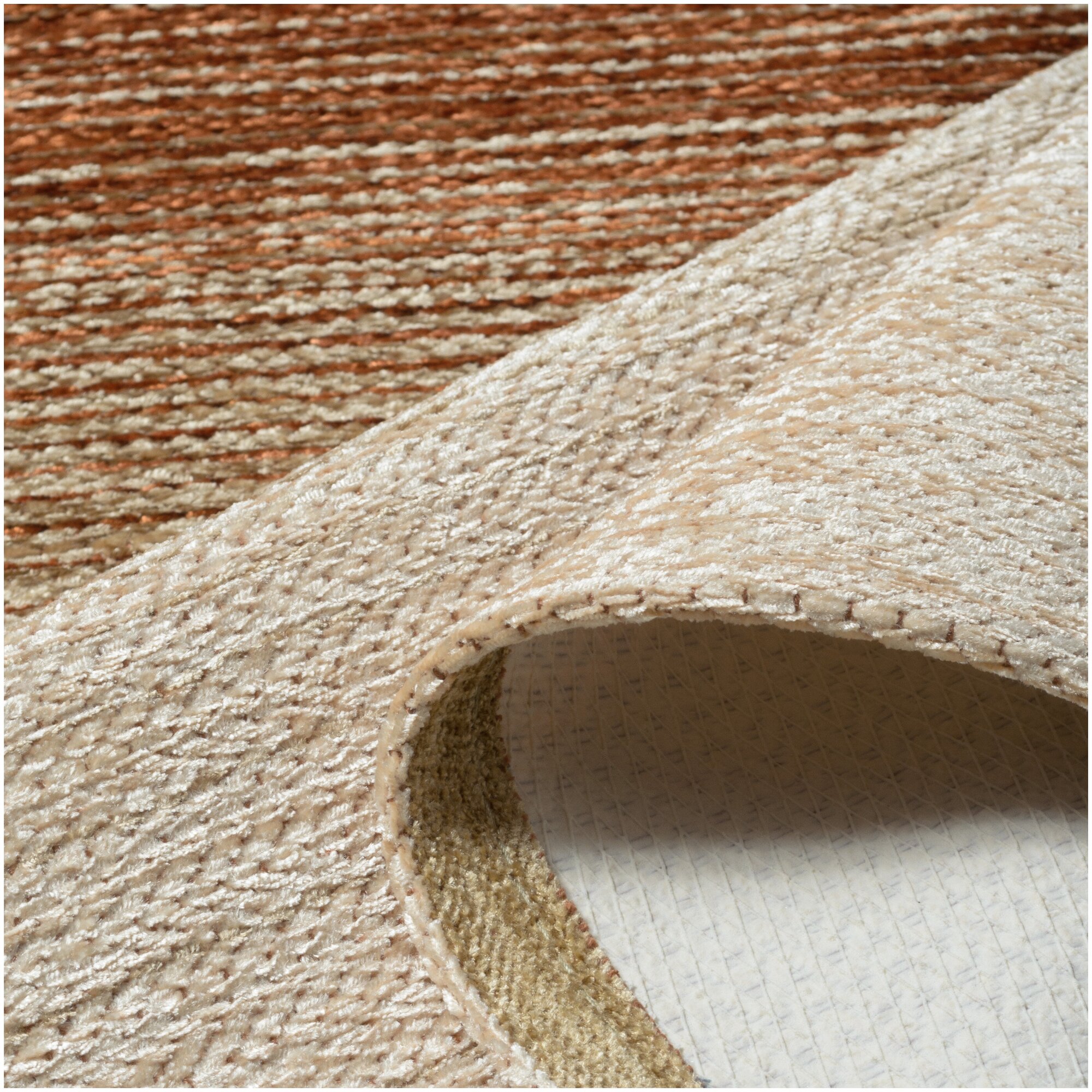 Верх коврика — искусственный шенилл (96% акриловый шенилл, 4% вискоза) с красивой рельефной структурой.