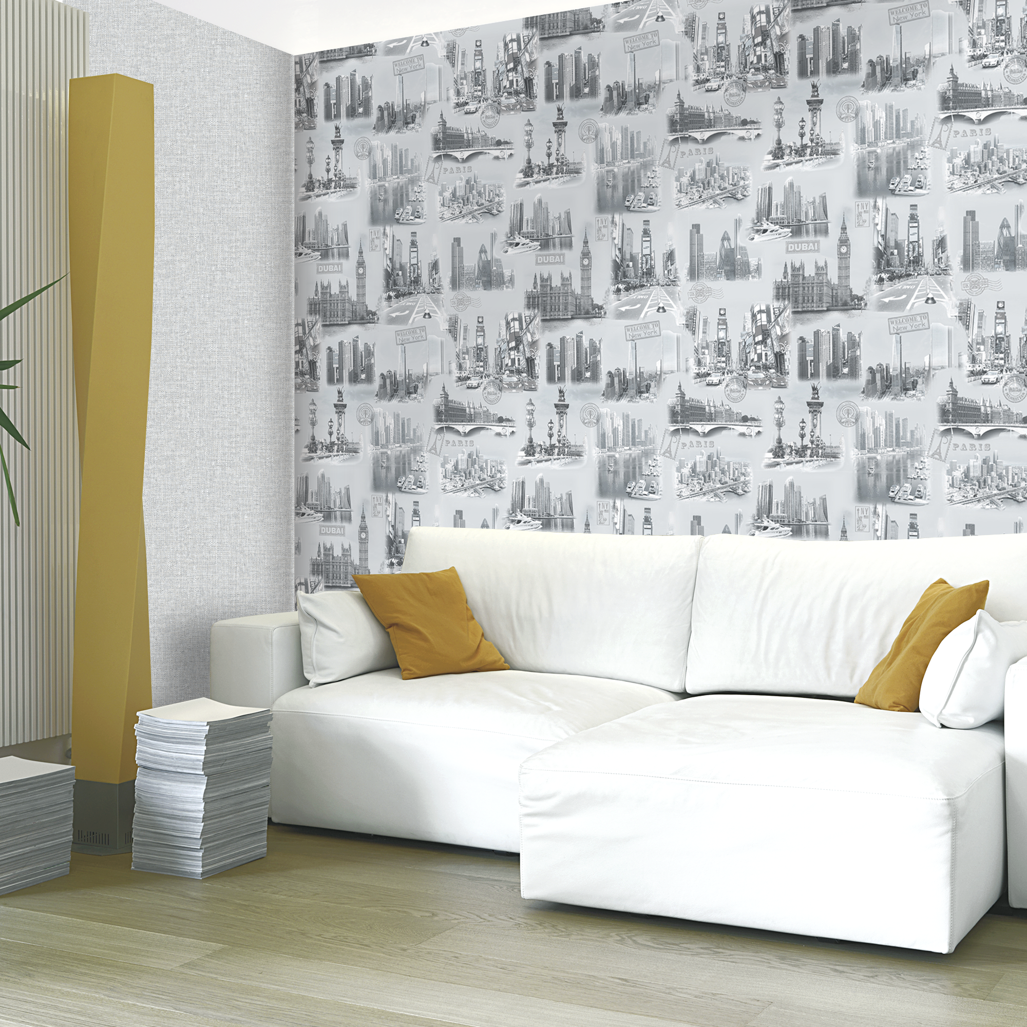 Сервис сравнения цен СкидкаГИД предлагает сравнить цены на товар «Обои бумажные Сити серые 0.53 м 4710 Леруа Мерлен»