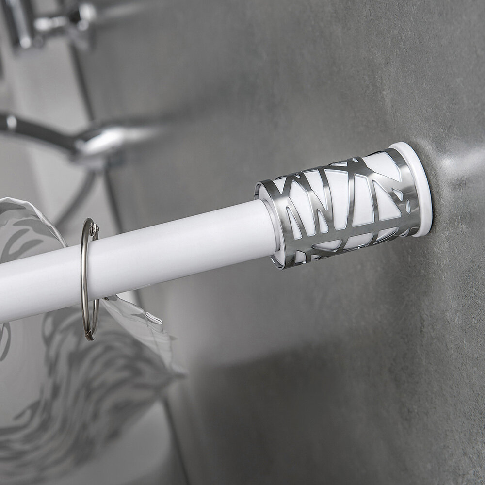 Карниз для ванной комнаты телескопический Grintosa предназначен для подвешивания шторки и защиты стен и пола от брызг воды. Обеспечивает комфортные условия купания, применяется для ванны или душа, совмещенного санузла. Раздвижная конструкция состоит из сегментов, которые при складывании входят один в другой. Выполнена из стали с глянцевым покрытием. Накладки из ABS-пластика защищают покрытие стены от царапин при фиксации карниза.