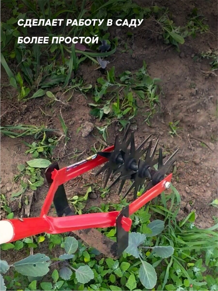 Этот инструмент не той категории,чтобы купил и сразу начал им пользоваться.Необходимо насадить черенок, желательно с утолщением на конечной части комля.Обязательно заточить подвижную пластину с двух сторон,поскольку именно она обеспечивает подрезку растений.Сама пластина легко снимается.После этих манипуляций начнётся настоящая работа с удовольствием. Принцип простой:захотели срезать сорняки или разрыхлить почву на большой глубине наклоняйте культиватор к земле и выполняйте поступательно- возвратные движения. Советую к приобретению.
