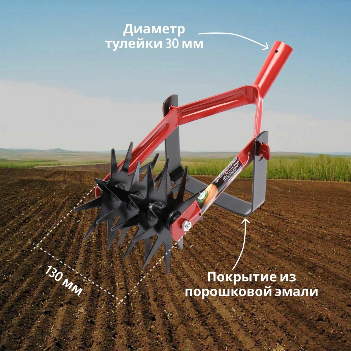 Культиватор ротационный от российского производителя представляет собой садовый ручной инструмент, предназначенный для обработки почвы путем рыхления, прополки и окучивания. Выполненный из качественной углеродистой закаленной стали с вращающимися дисками в виде звездочек, этот садовый инструмент незаменим в местах, где проходит техника на колесах: в розариях, на альпийских горках, рядом с ограждениями. Надежное эмалевое покрытие защищает изделие от коррозии.
