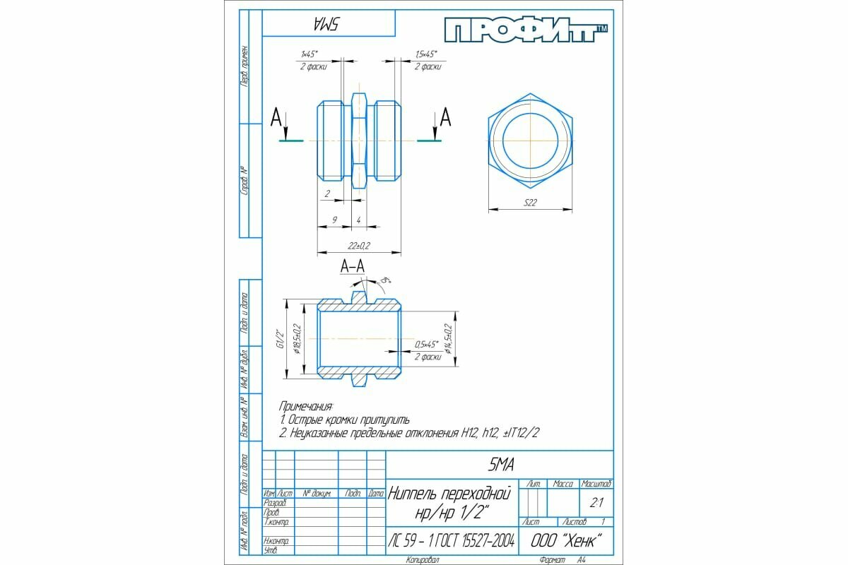 Муфта переходная 1/2 дюйма наружная-наружная резьба Boutte