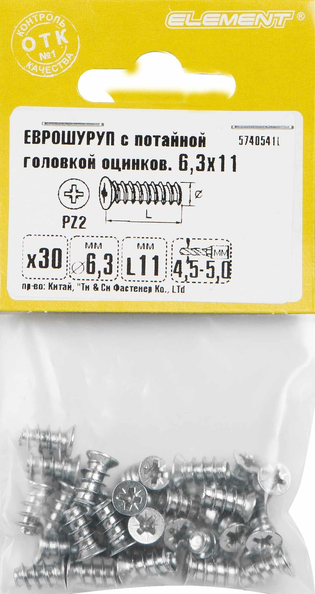 Еврошуруп мебельный потайной 6.3х11 мм цвет хром 30 шт. Леруа Мерлен