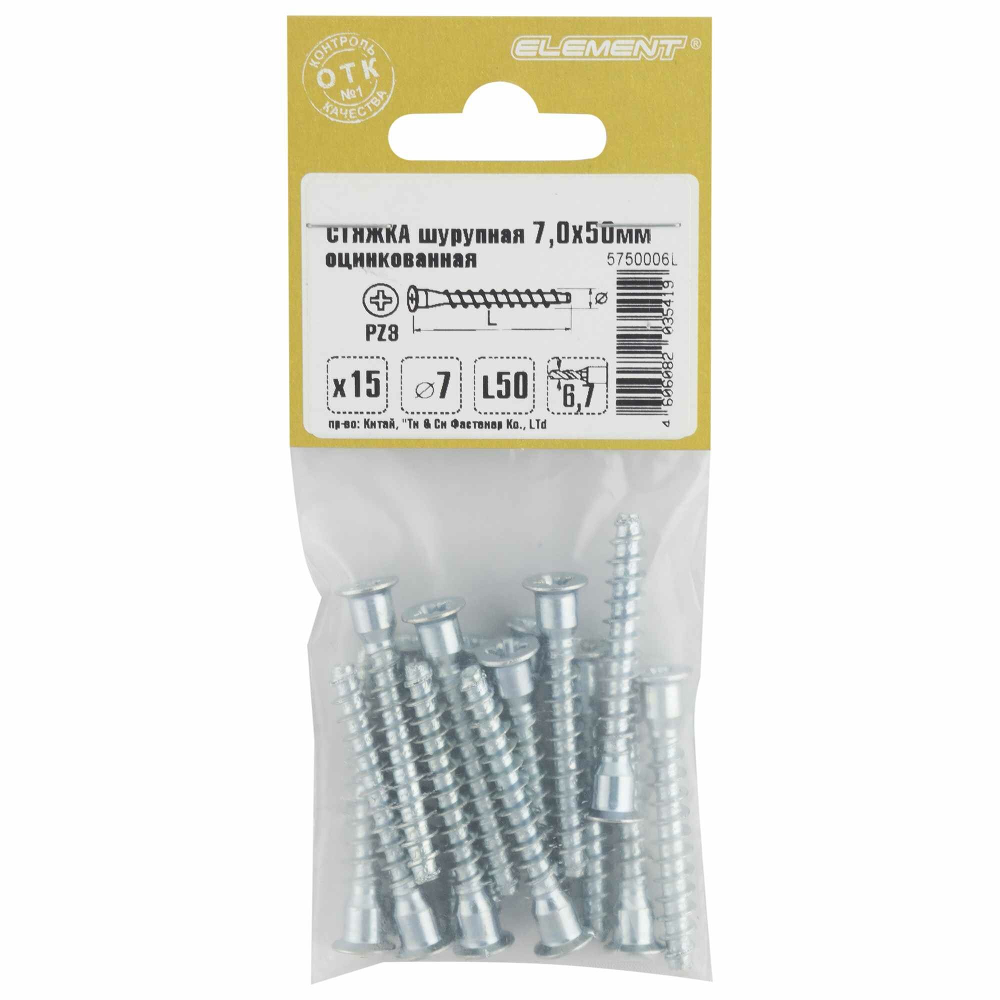 Стяжка мебельная шурупная PZ 7х50 мм цвет хром 15 шт. Леруа Мерлен