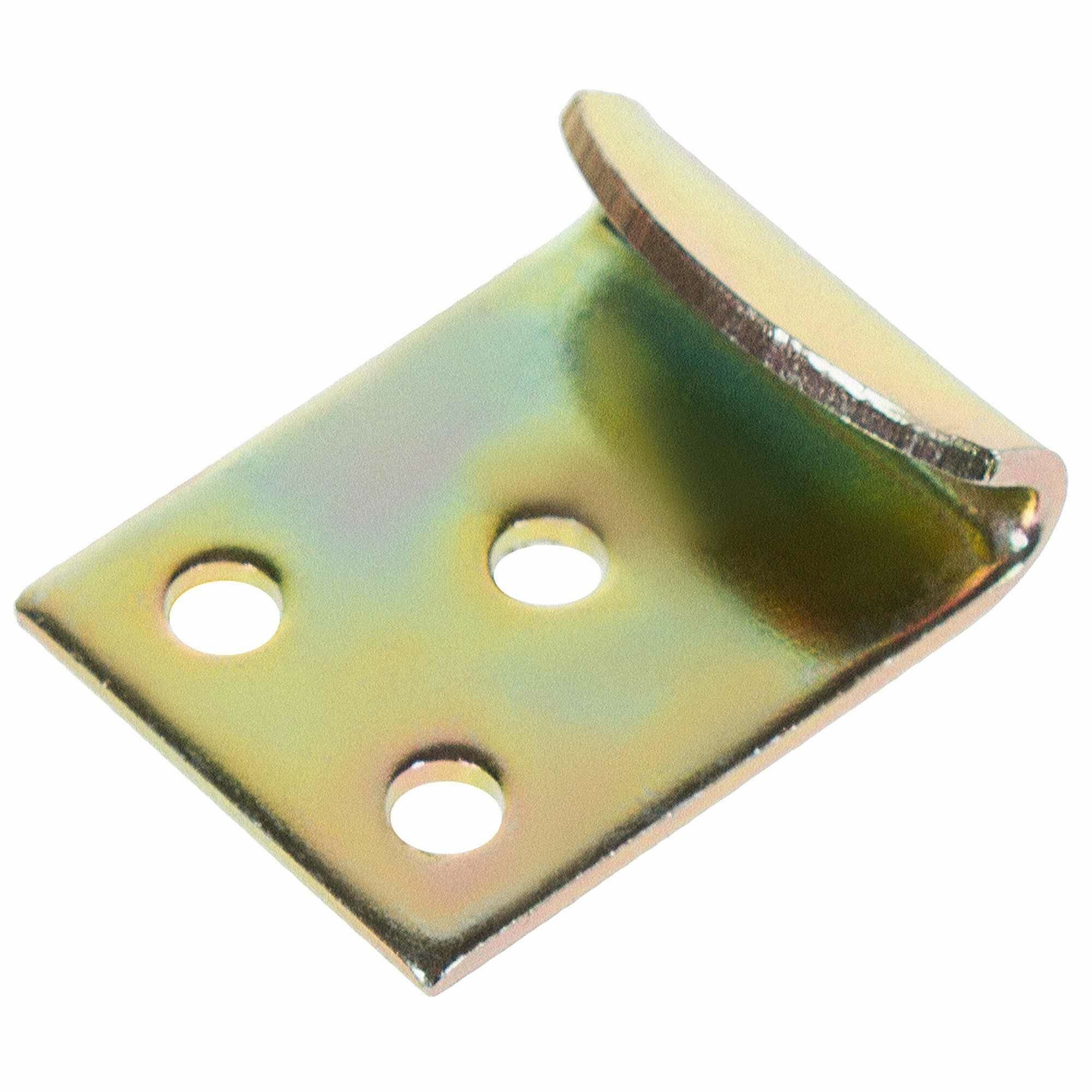 Крюк для запора длиной 34 мм, толщиной 2 мм, шириной 25 мм предназначен для накидных или сдвижных запорных механизмов, являясь неподвижной частью системы. С помощью шурупов прочно монтируется к дверной коробке (для крепления предусмотрены три отверстия) напротив подвижной части задвижки или щеколды. Задвинутый в него ригель обеспечивает прочное закрывание двери, гарантируя безопасность хозяевам помещения. Изготовлен из оцинкованной стали с гальваническим покрытием. Преимущества: - конструкция прочна и надежна; - хорошо переносит температурные перепады; - не подвержен коррозии; - гарантирован длительный срок службы.