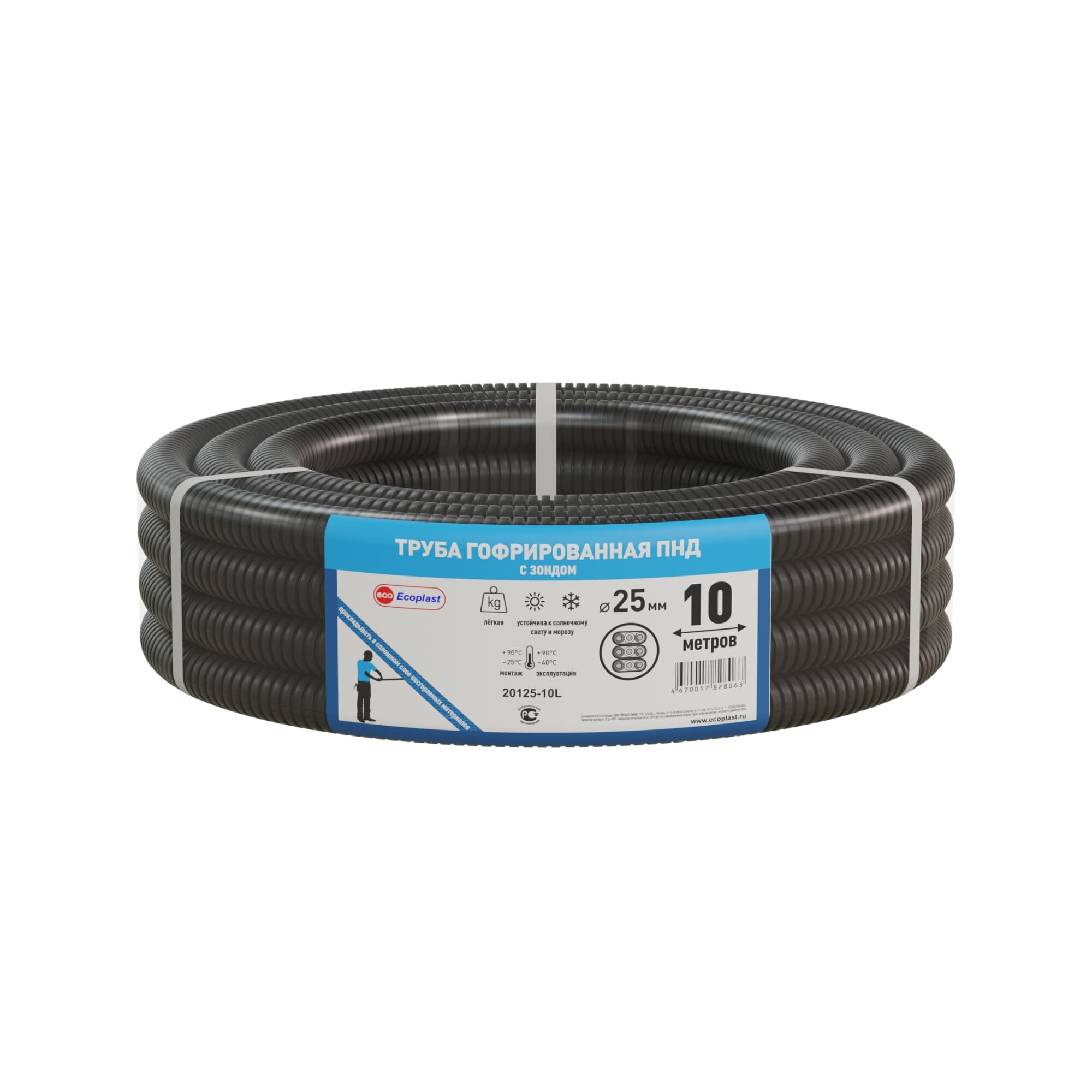 Труба гофрированная Экопласт ПНД с зондом D25 мм 10 м