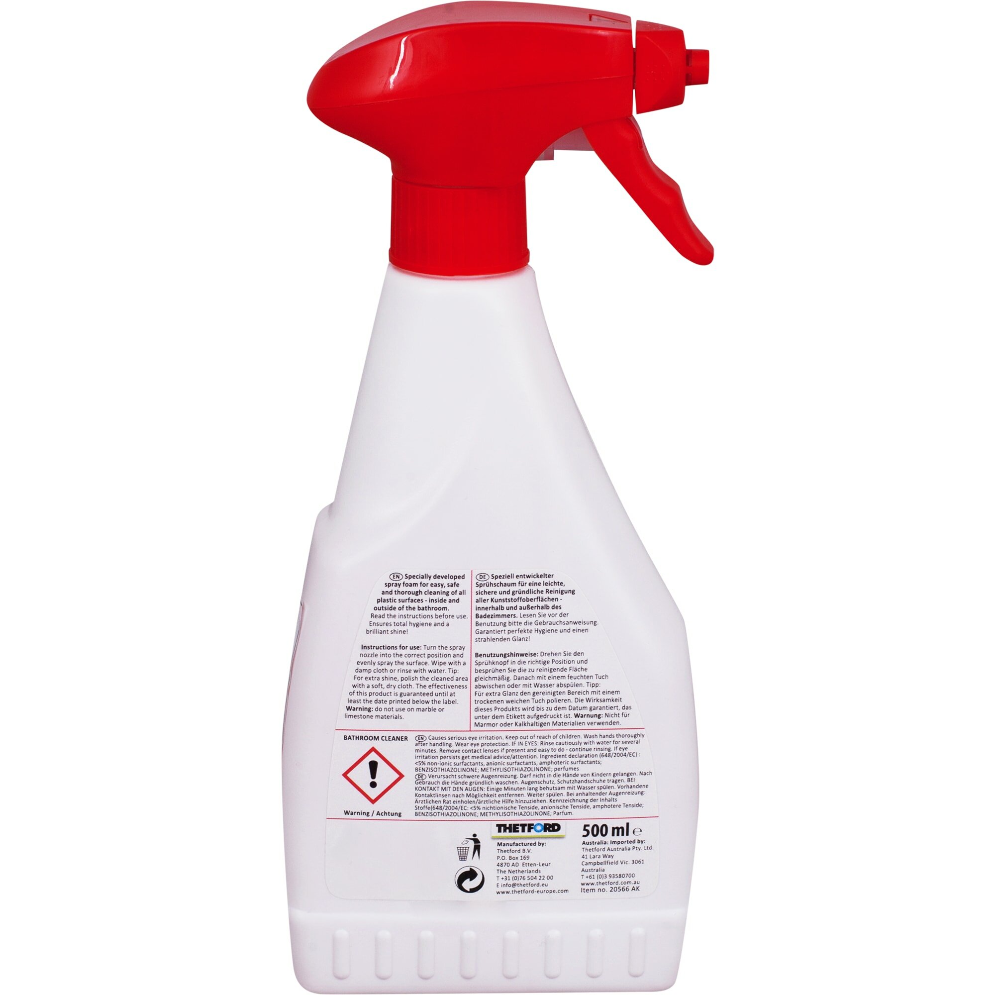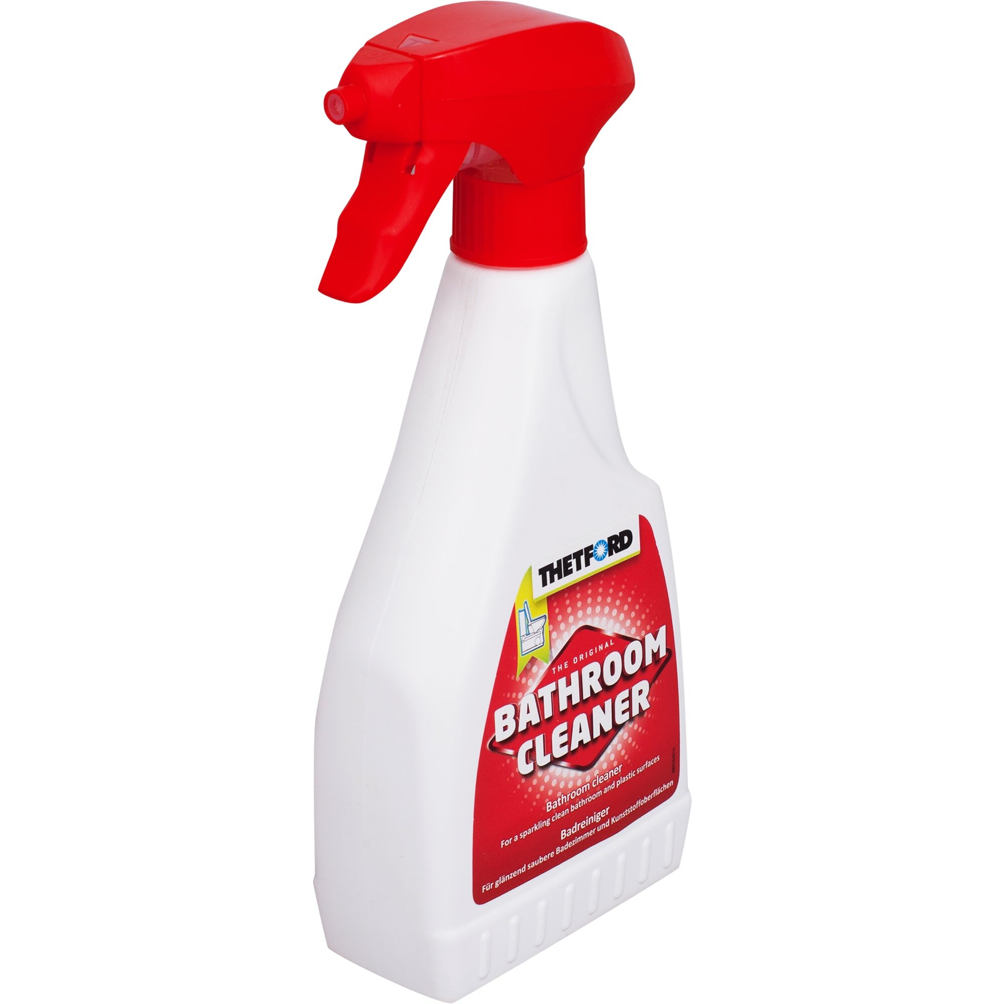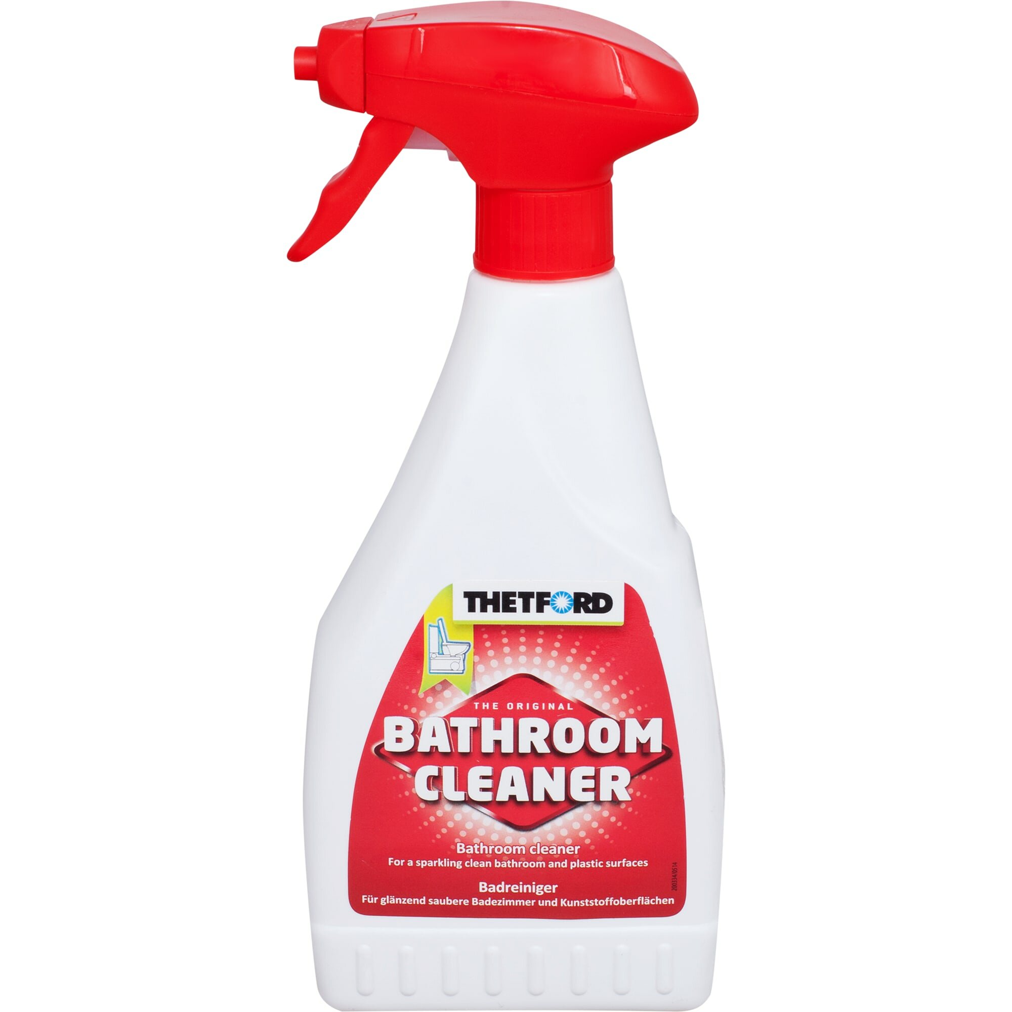 Универсальное дезинфицирующее чистящее средство для биотуалетов Bathroom Cleaner от компании Thetford, объемом 500 мл.Чистящее средство Bathroom Cleaner предназначено для очистки любого вида пластика и дезинфекции всех поверхностей биотуалетов Thetford. Средство легко наносится за счет пульверизатора и легко смывается. Bathroom Cleaner имеет приятный ненавязчивый запах.Чистящее средство Thetford подходит для ежедневного использования. Безопасно не только для пластиковых поверхностей, но и для уплотнительных вкладок. Удаляет кальциевые отложения от воды.Средство разработано в собственной лаборатории Thetford. Имеет сертификат качества и безопасности.