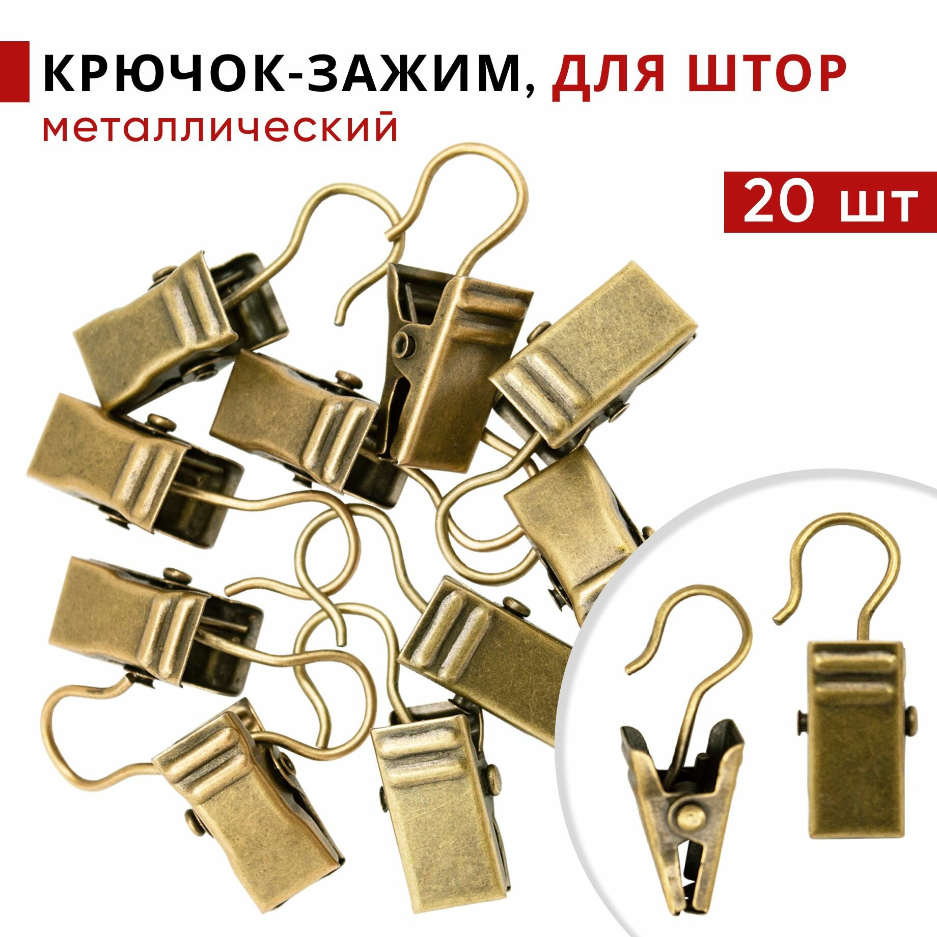Латунные зажимы Уют изготовлены из металла и предназначены для крепления штор к карнизу. Следует просто подвесить крючок к карнизу, не снимая его, а прищепкой прицепить саму ткань штор. Это позволяет создать эффектную свободную драпировку. Зажимы не деформируются со временем. В комплект входят 10 зажимов.