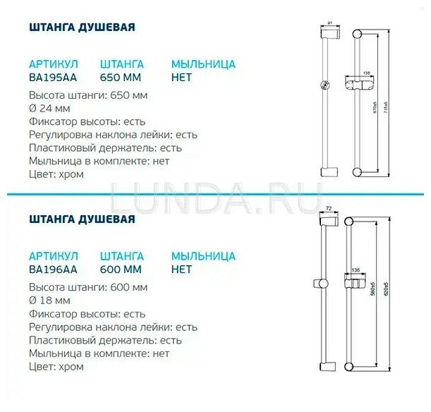 Штанги для душа с ценой 2238 р. - 3357 р.