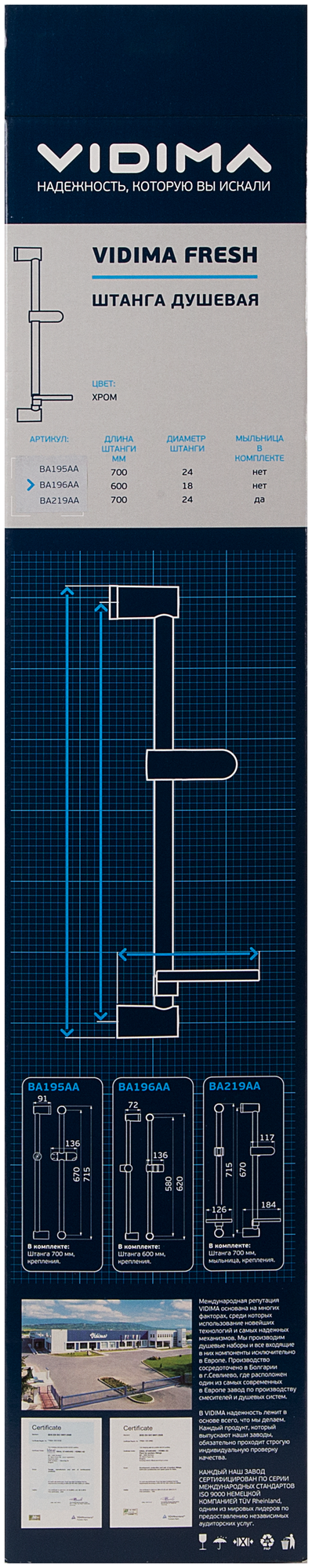 Штанга для душа Vidima Fresh BA196AA 60 см цвет хром