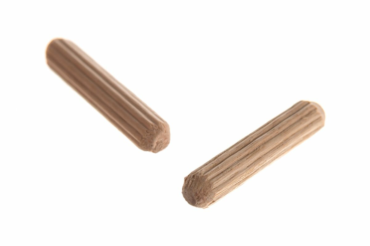 Шканты производятся из древесины. Они имеют форму цилиндра с заостренным концом. На поверхности есть насечки, которые обеспечивают надежную фиксацию деталей. Из особенностей модели: