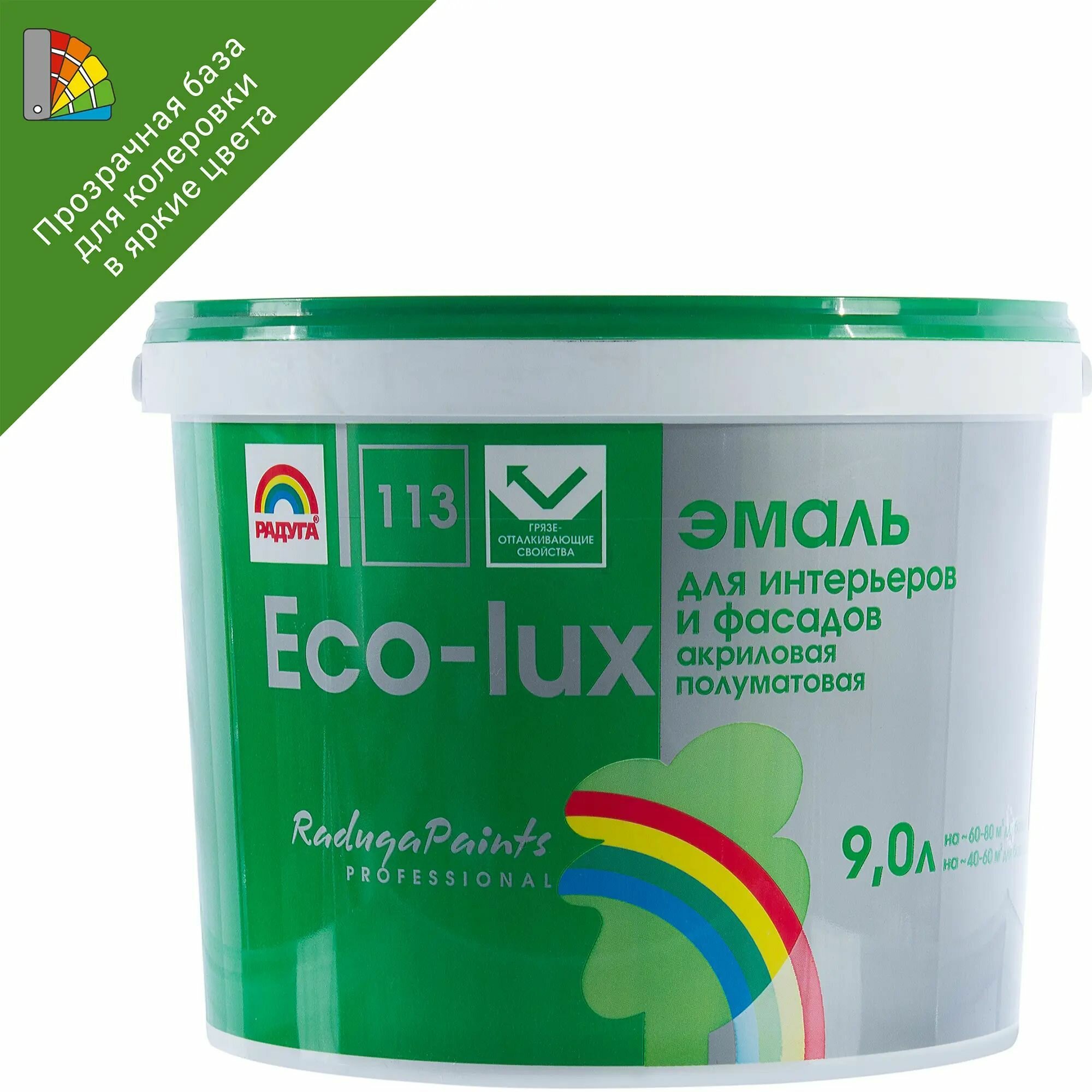 Эмаль для колеровки акриловая полуматовая Эко-Люкс 113 прозрачная база С 9л Радуга