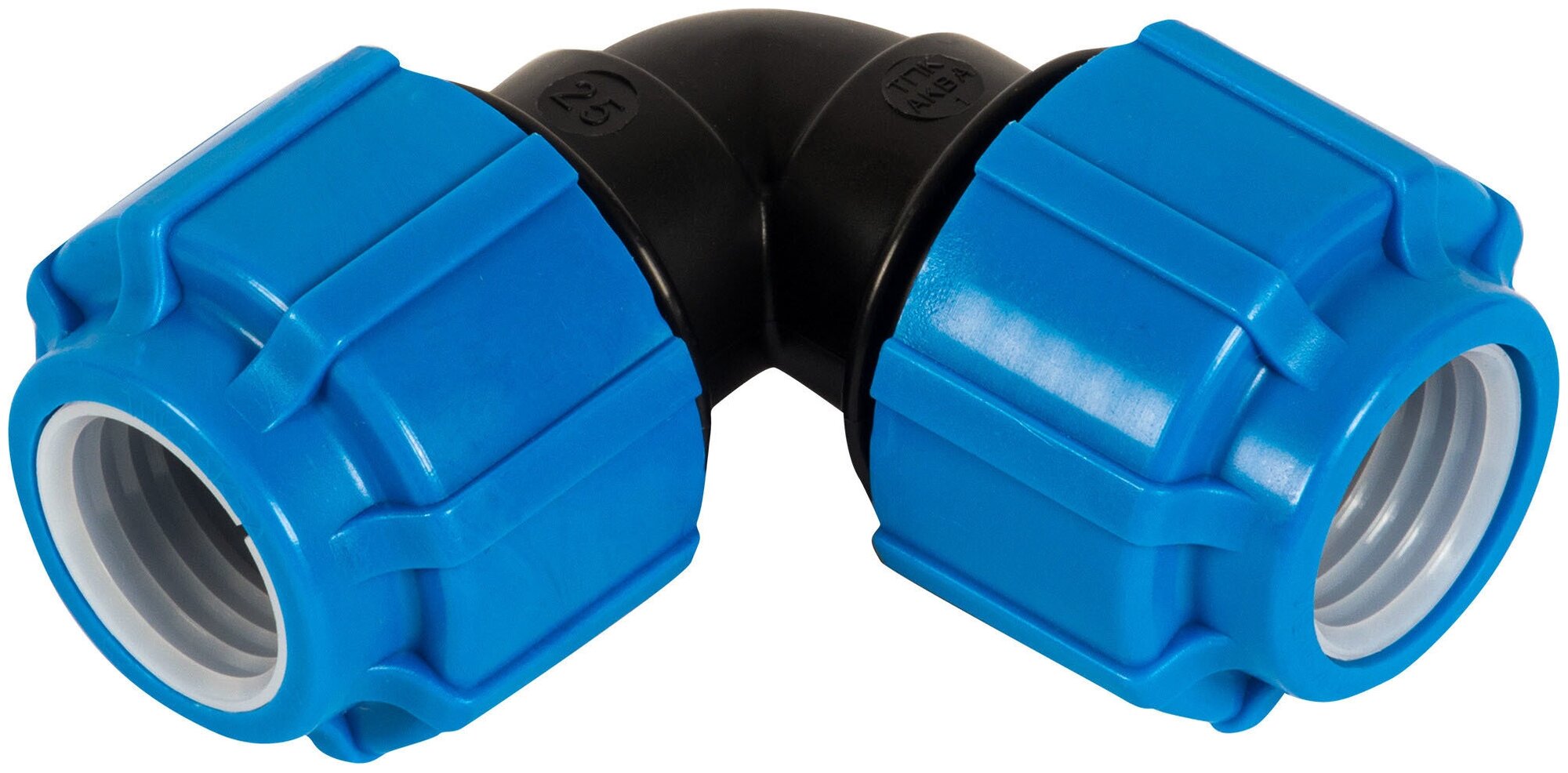 Отвод компрессионный предназначен для обеспечения надежного соединения под прямым углом полиэтиленовых труб равного диаметра. Такой отвод может использоваться при строительстве из ПНД труб систем питьевого или технического водопровода, систем напорной или безнапорной канализации, для устройства кабельных каналов. Отвод компрессионный так же широко применяется в системах полива (орошения).