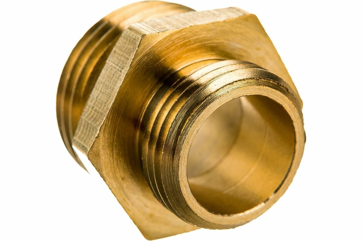 Муфта переходная, 1/2" x 3/8", наружная-наружная резьба - соединительный сантехнический элемент. Предназначена для быстрого и надежного соединения между собой фрагментов трубопроводов различного диаметра - 1/2 и 3/8 дюйма, имеющих внутреннюю резьбу. Используется латунная муфта переходная преимущественно при построении систем горячего и холодного водоснабжения, либо отопления.