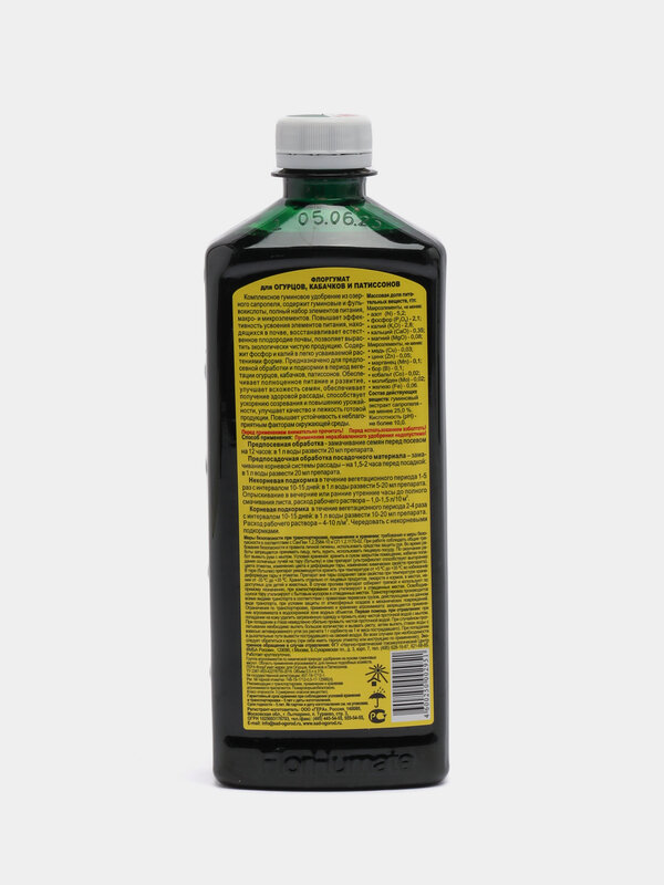 «ФлорГумат» для огурцов, патиссонов, кабачков – это комплексное жидкое удобрение на основе гуминового экстракта сапропеля. В его составе содержится полный набор элементов питания и микроэлементов, который дает возможность вырастить качественную продукцию. Удобрение восстанавливает естественное плодородие почвы, увеличивает эффективность усвоения элементов питания, позволяет получить натуральные и экологически чистые овощи.