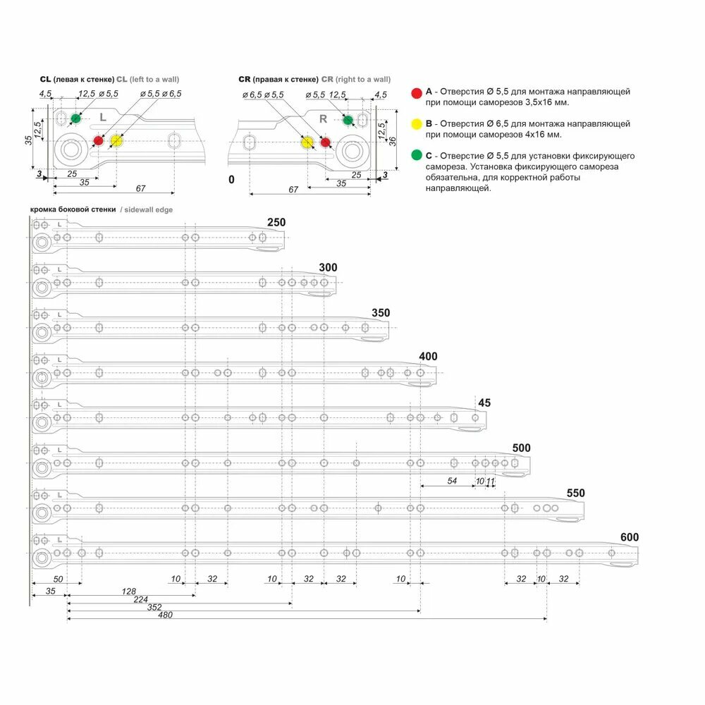Тип товара: Направляющие для ящиков