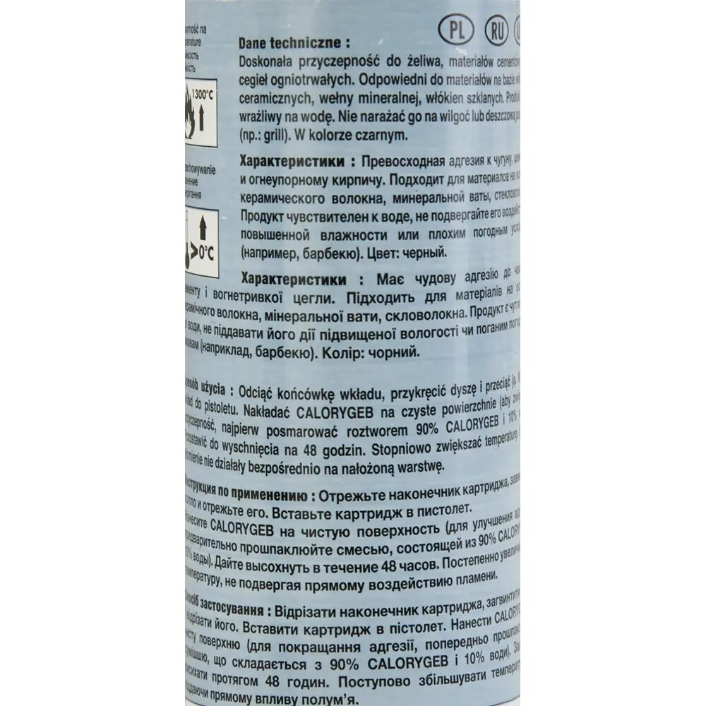 Огнеупорный герметик Calorygeb предназначен для сборки дымоходов и отопительных приборов, а также заделки трещин в каминах и подобных сооружениях. Благодаря отличному сцеплению с большинством видов поверхностей, например, с кирпичом, цементом и металлом, работать с ним может даже новичок. Туба герметика имеет удобный дозатор, позволяющий экономить состав, а большой объем (310 мл) позволяет провести все необходимые работы за 1 раз.