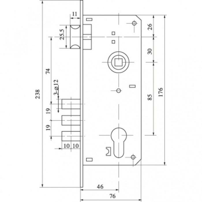 Удаленность замочной скважины от торца — 45 мм.