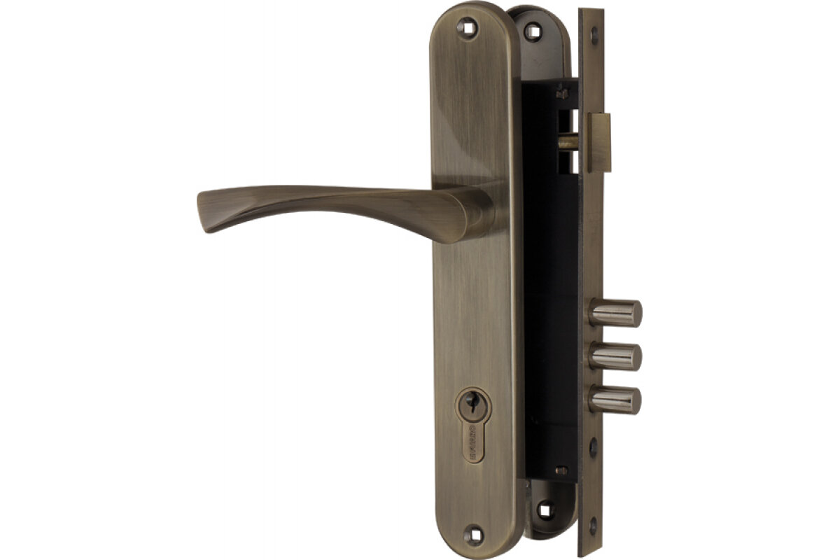 Замок врезной в комплекте с ручкой Set F9011 нержавеющая сталь цвет бронза ЭРА