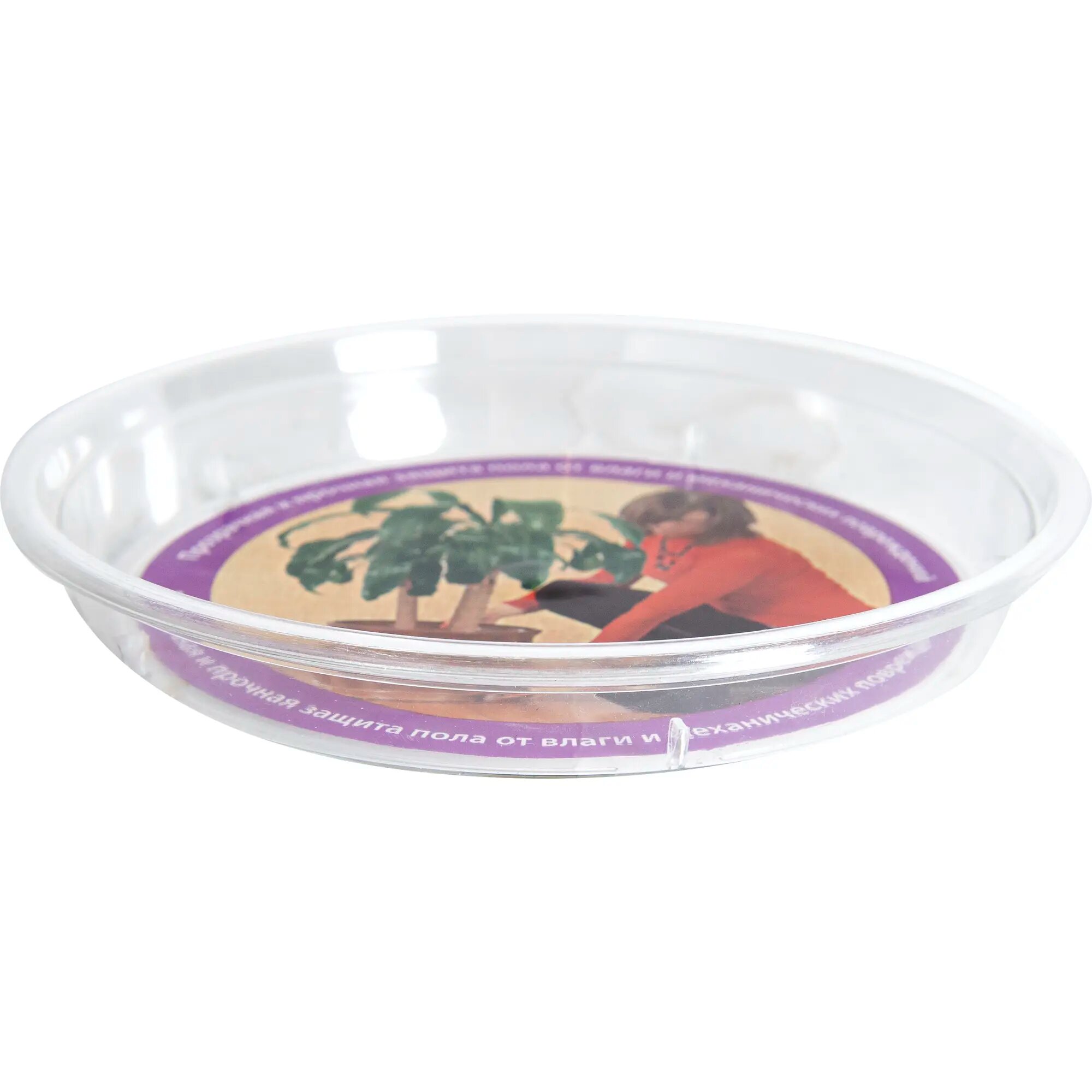 Пластиковый прозрачный поддон круглой формы применяется в качестве подставки под горшок диаметром до 14 см. Такое решение защитит чистоту в доме от грязи, царапин и воды. Изделие сделано из прочного и легкого материала. Товар характеризует практичный дизайн с высоким бортиком, наклоненным наружу и специальным рифлением на дне, чтобы контейнер с растением не скользил.