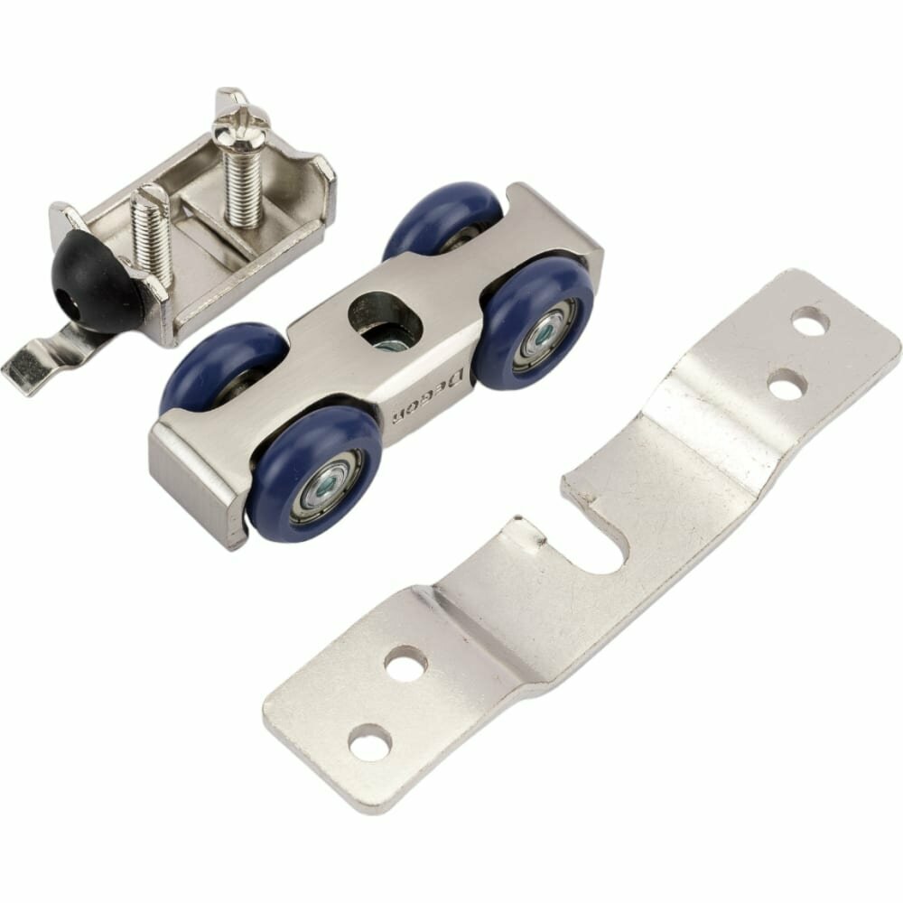 Верхние ролики предназначены для установки на раздвижных межкомнатных дверях. Мягкие резиновые ролики обеспечивают плавное перемещение полотна по направляющим, а стальной каркас с высокой прочностью выдерживает нагрузку до 100 кг. Ролики соединяются с фиксатором с помощью винтовой резьбы для регулировки их по высоте.