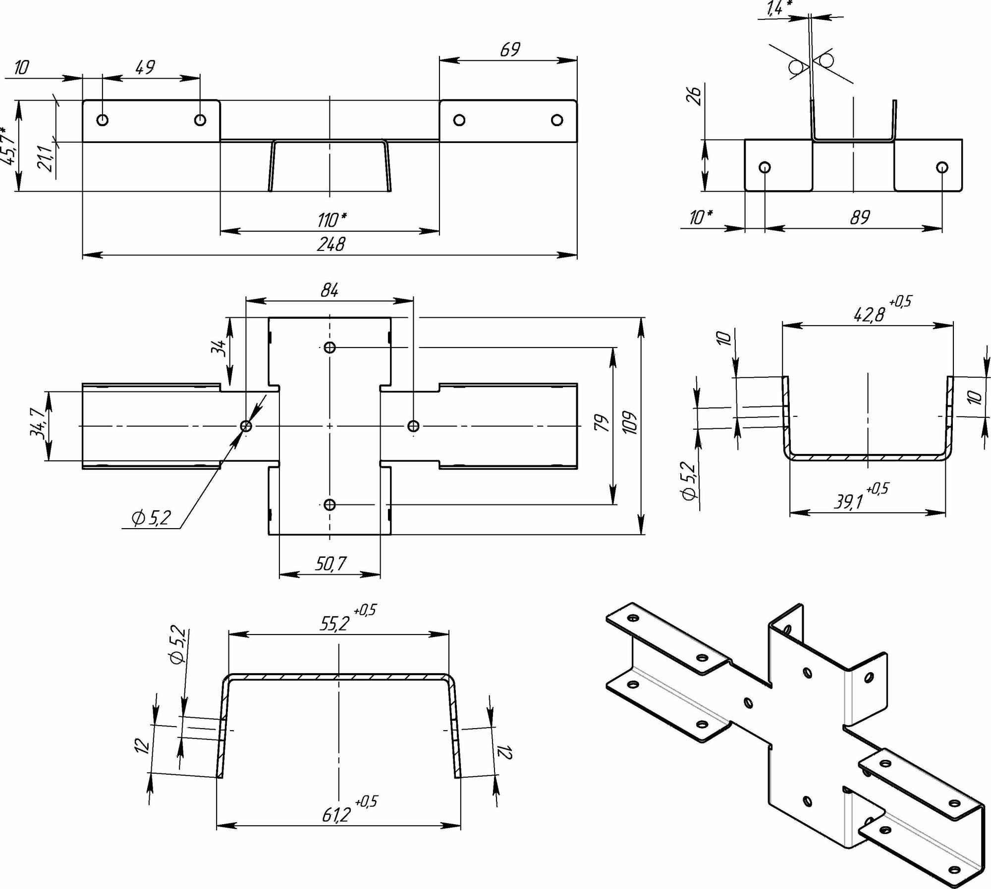 Х-кронштейн изготовлен из оцинкованной стали толщиной 1,4мм.