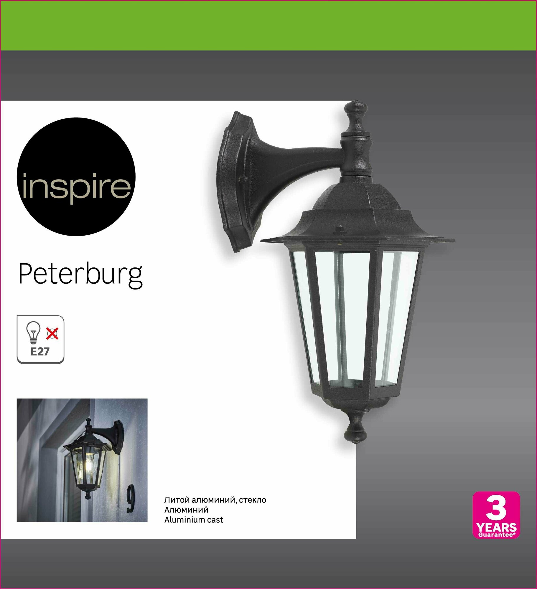 Сервис сравнения цен СкидкаГИД предлагает сравнить цены на товар «Настенный светильник уличный вниз Inspire Peterburg 1xE27х60 Вт алюминий/стекло цвет чёрный»