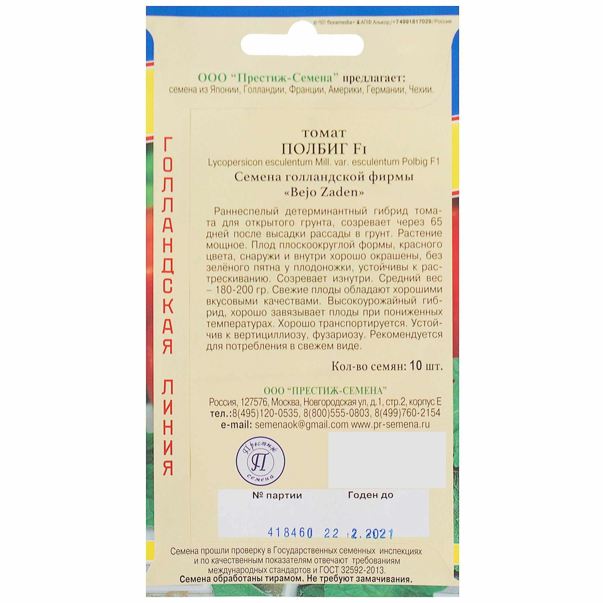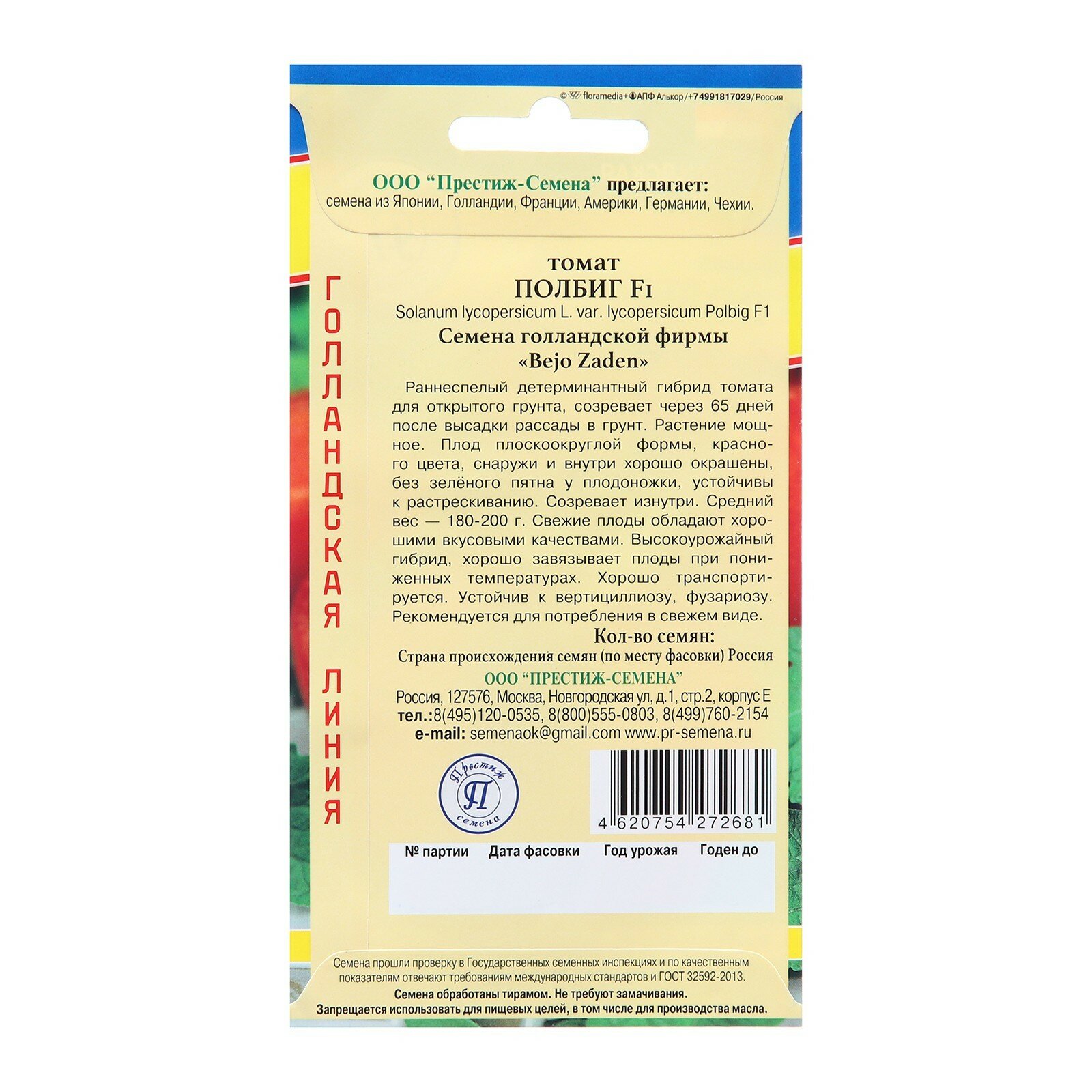 Томат «Полбиг» F1 — детерминантный гибрид, предназначенный для открытого грунта. Созревание наступает через два месяца после высадки рассады. Помидоры круглые, плотные, устойчивые к растрескиванию. Кожура красная, без зеленоватых пятен на поверхности. Вкусовые свойства отличные.