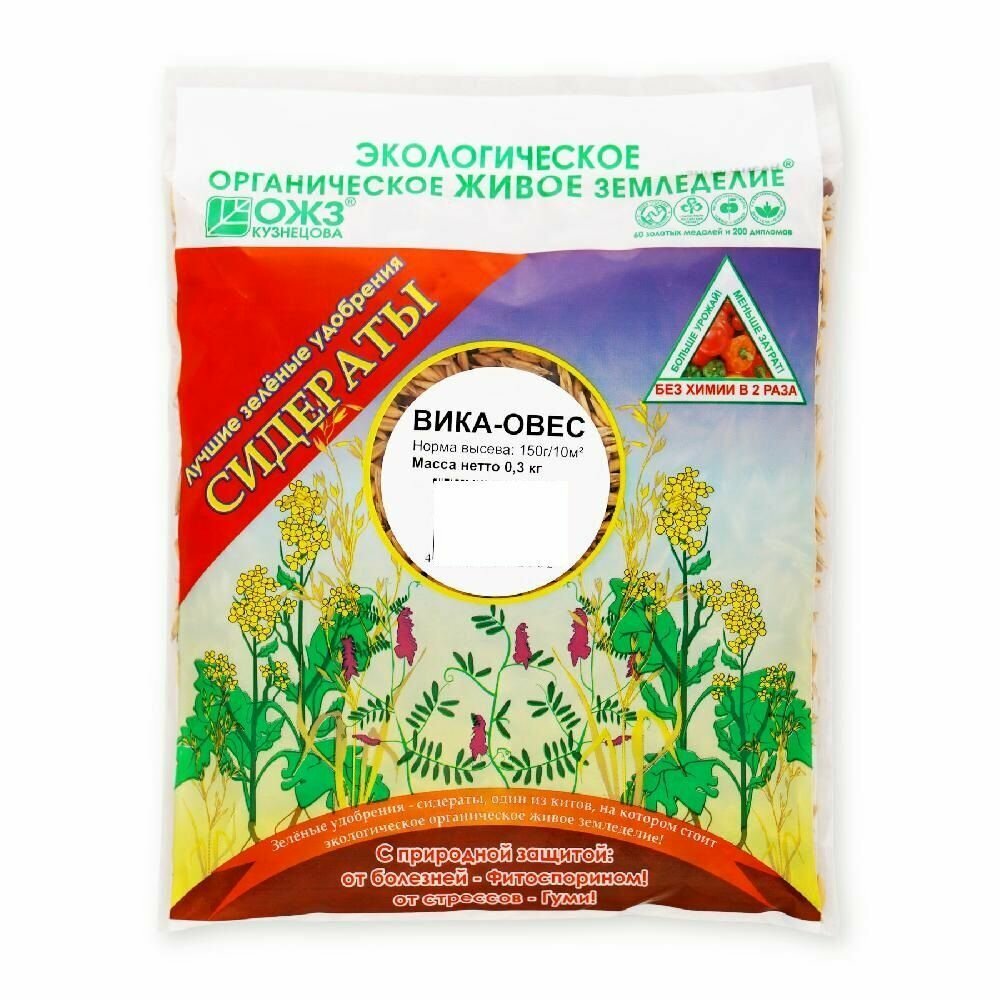 Удобрение сидерат «Вика-овес» 0.3 кг - семена для улучшения структуры, обогащения почвы и угнетения роста сорняков.
