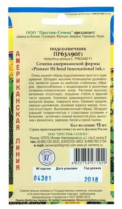 Подсолнечник «ПР63А90» F1 — стабильный гибрид, приживающийся в разных климатических зонах. Высокое растение с выпуклой корзинкой дает хороший урожай. Семянка овальной формы, средних размеров, с черной лузгой. Процент содержания масла довольно высокий. Семечки едят сырыми и жареными, добавляют в кондитерские изделия, перерабатывают.