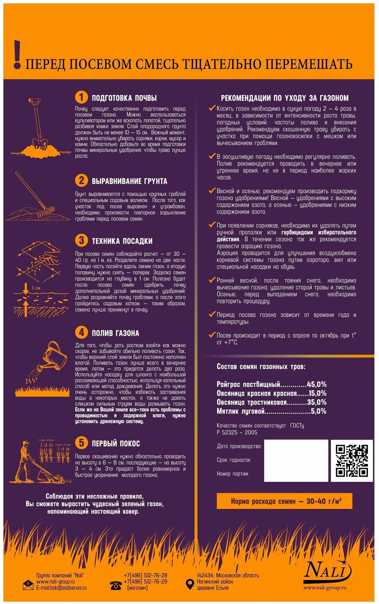 | Состав | Райграс 30%, овсянница 50%, овсянница 10%, мятлик луговой 10% |