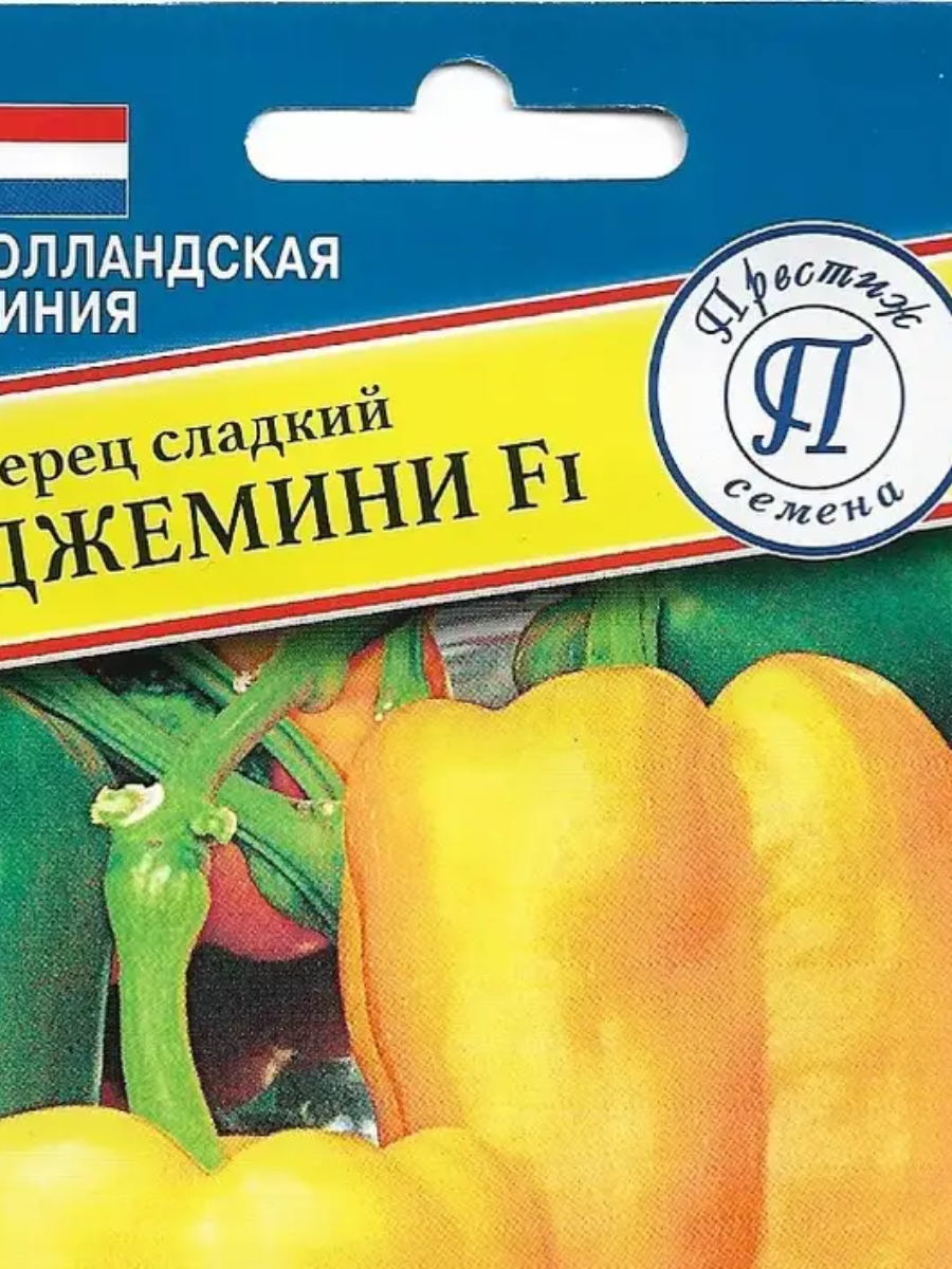 **Семена Перец сладкий «Джемини» F1** — ранний сорт. Высевается на рассаду в феврале, в грунт пересаживается в конце мая. От первых всходов до начала сбора урожая проходит в среднем 85-90 суток. Отличается невысоким ростом — не превышает 0,6 м. Листья темно-зеленого цвета, размер — средний. Растение подвергают формовке в виде удаления боковых побегов, а также листочков до первой развилки.