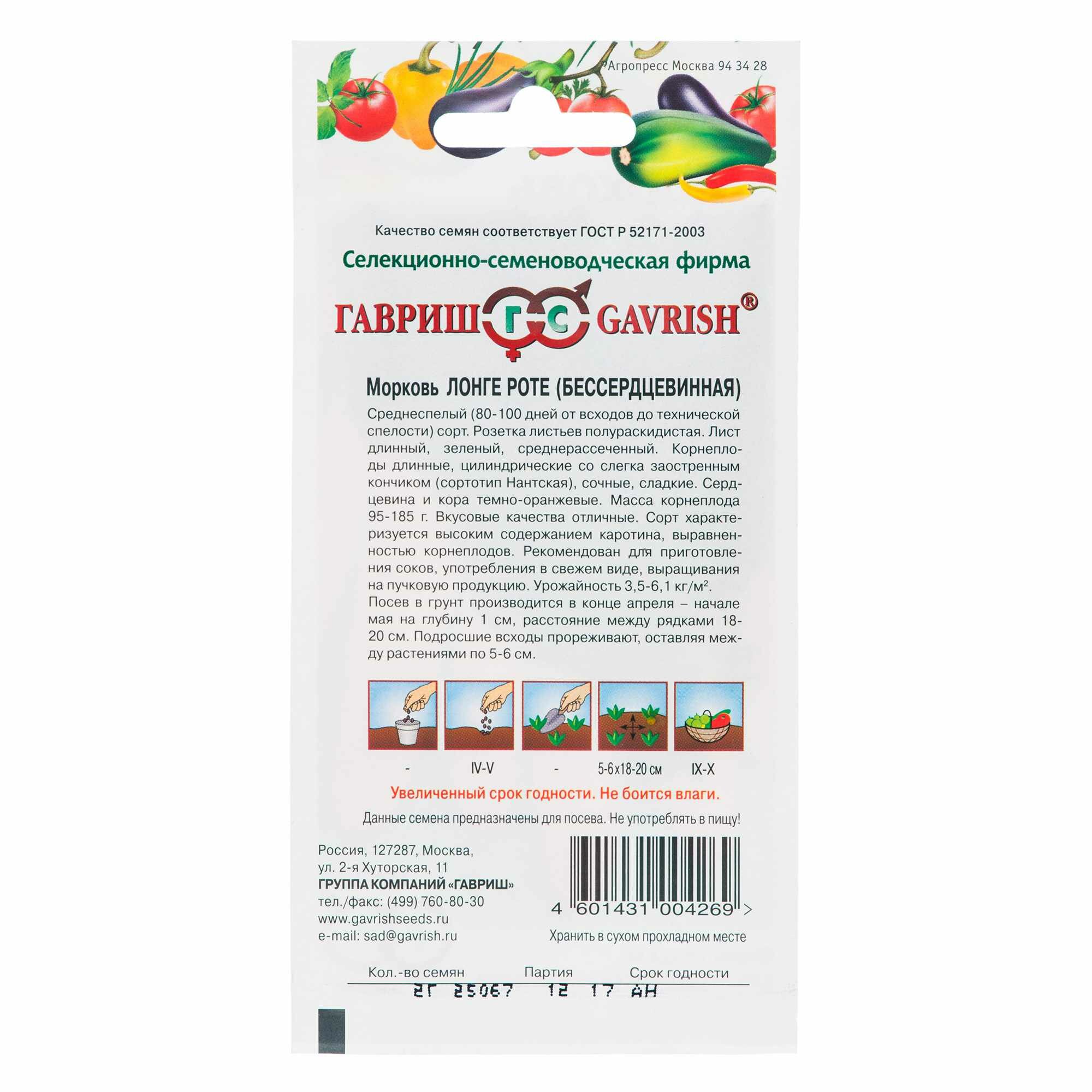 | Тип продукта | Семена овощных культур |
