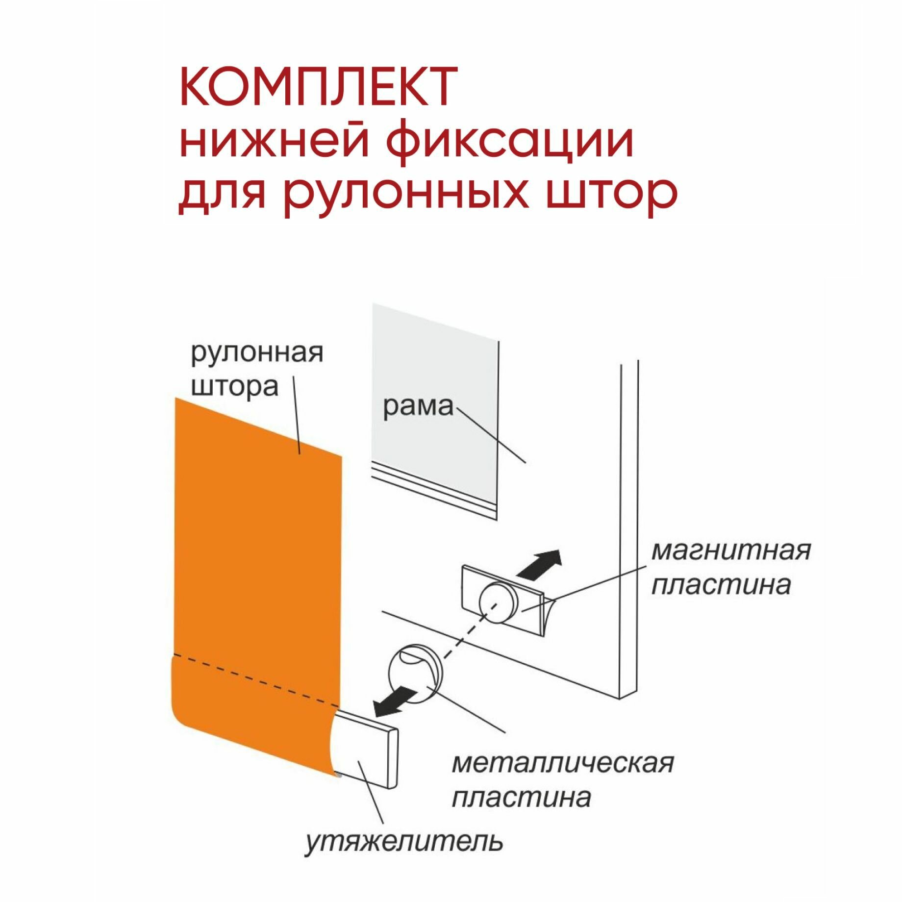 Универсальный нижний фиксатор для рулонных штор и горизонтальных жалюзи.Крепится легко и быстро, фиксирует нижний утяжелитель в плоскости оконной рамы. В комплекте два магнита белого цвета с двусторонним скотчем.