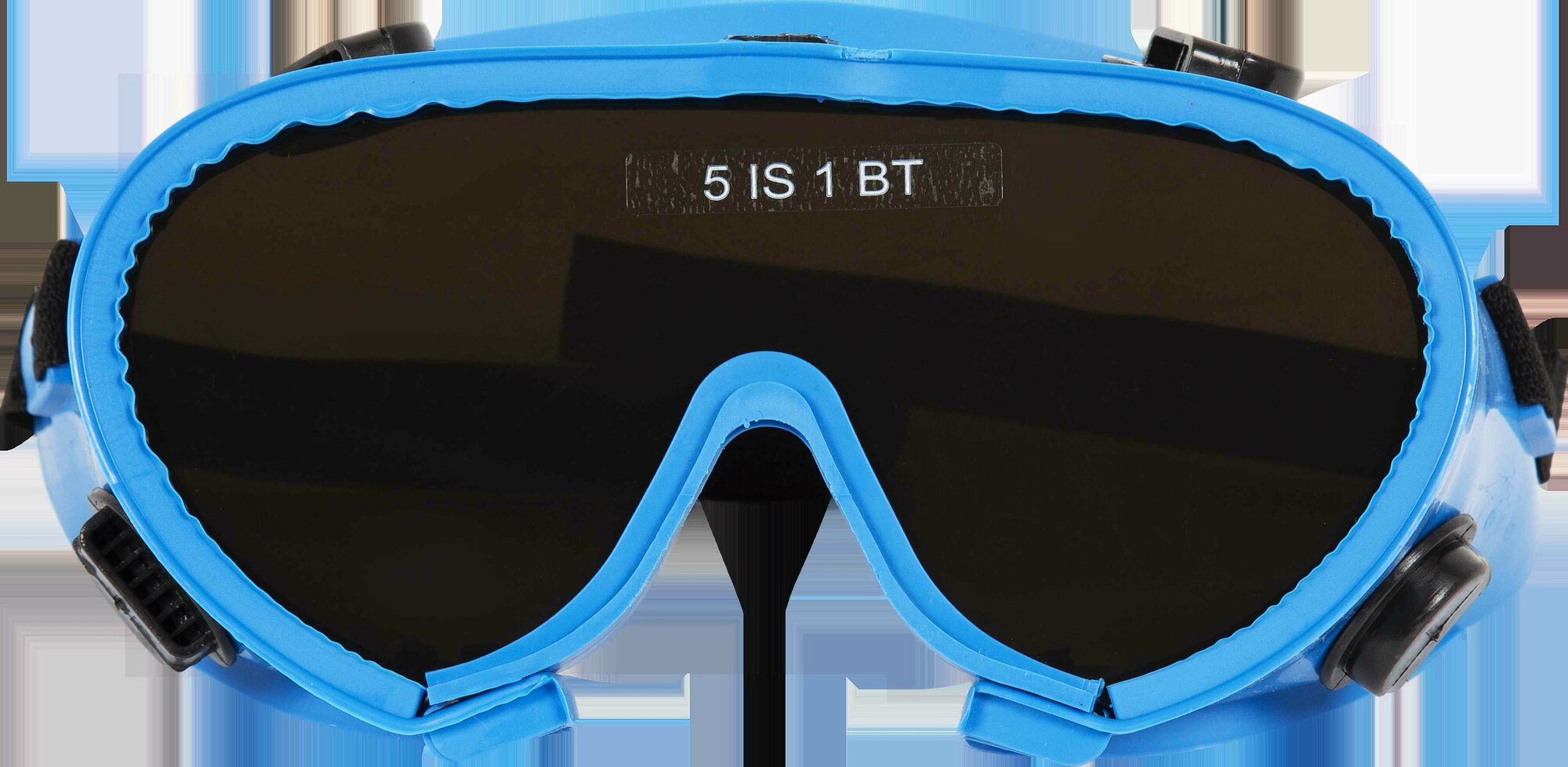Очки, защищающие глаза от вредных излучений, летящих искр и твердых частиц окалины — обязательный элемент экипировки газосварщика. Плотность прилегания очков к лицу регулируется с помощью эластичной тесьмы.
