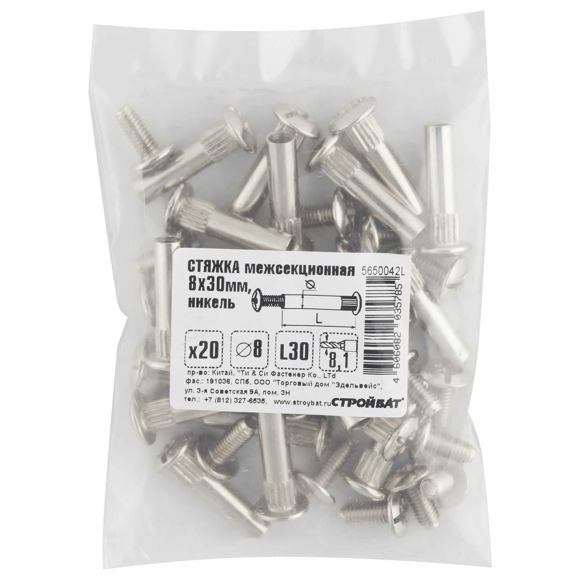 Стяжка мебельная межсекционная 8х30 мм металл цвет никель 20 шт. Леруа Мерлен