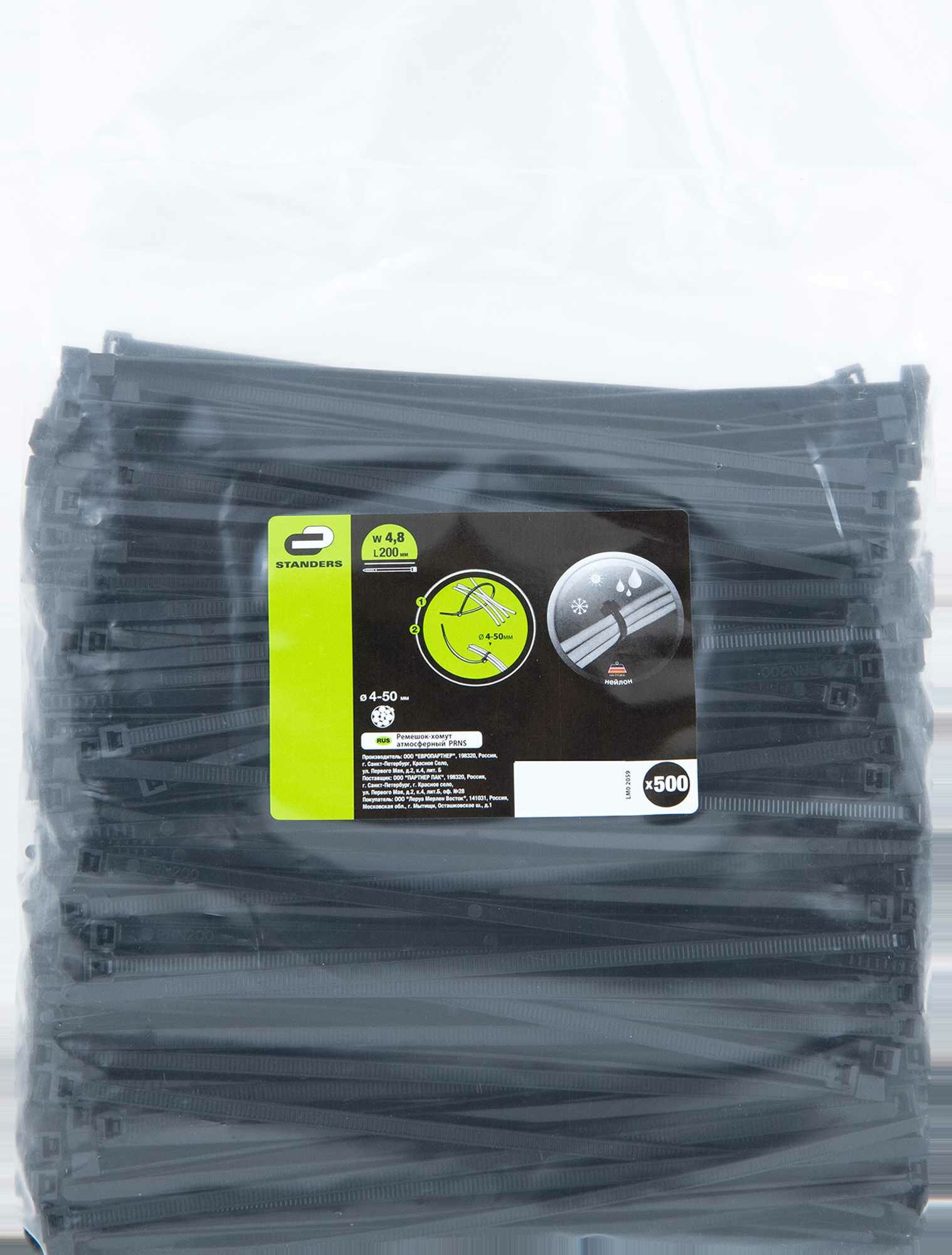 | Состав комплекта | Ремешок-хомут 200x4,8 черный - 500 шт. |