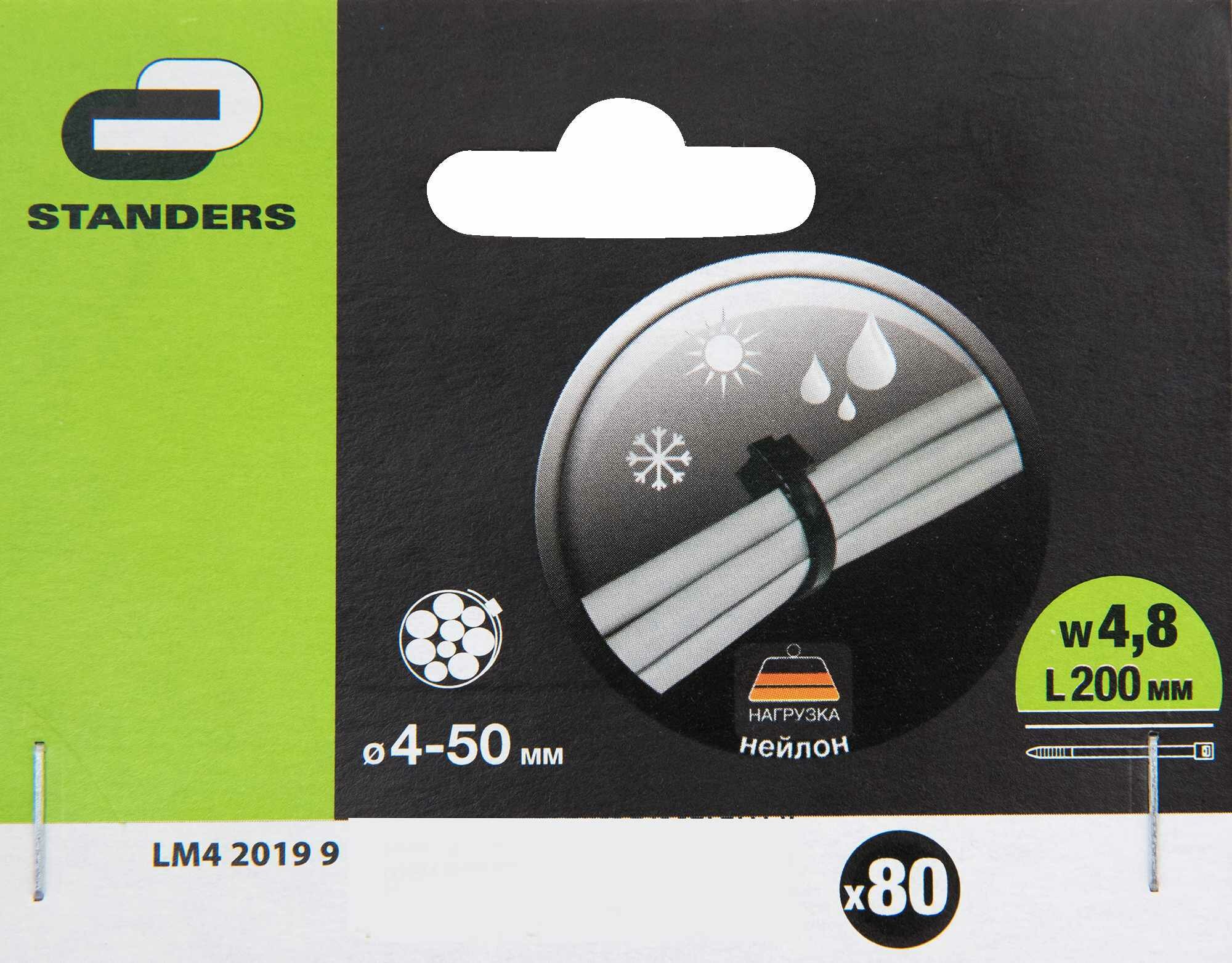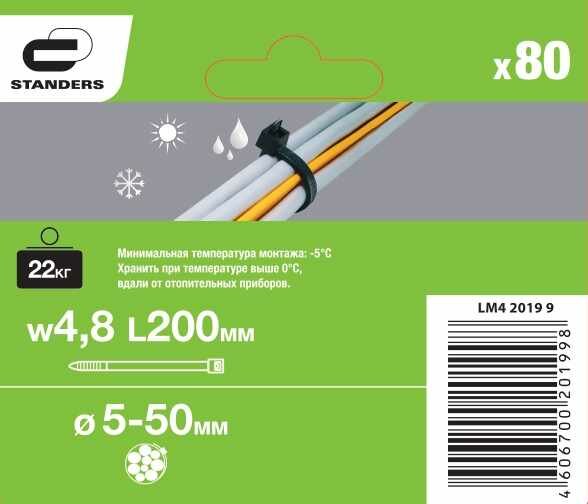 Хомут стяжка Standers атмосферостойкий 200х4.8 мм 80 шт.