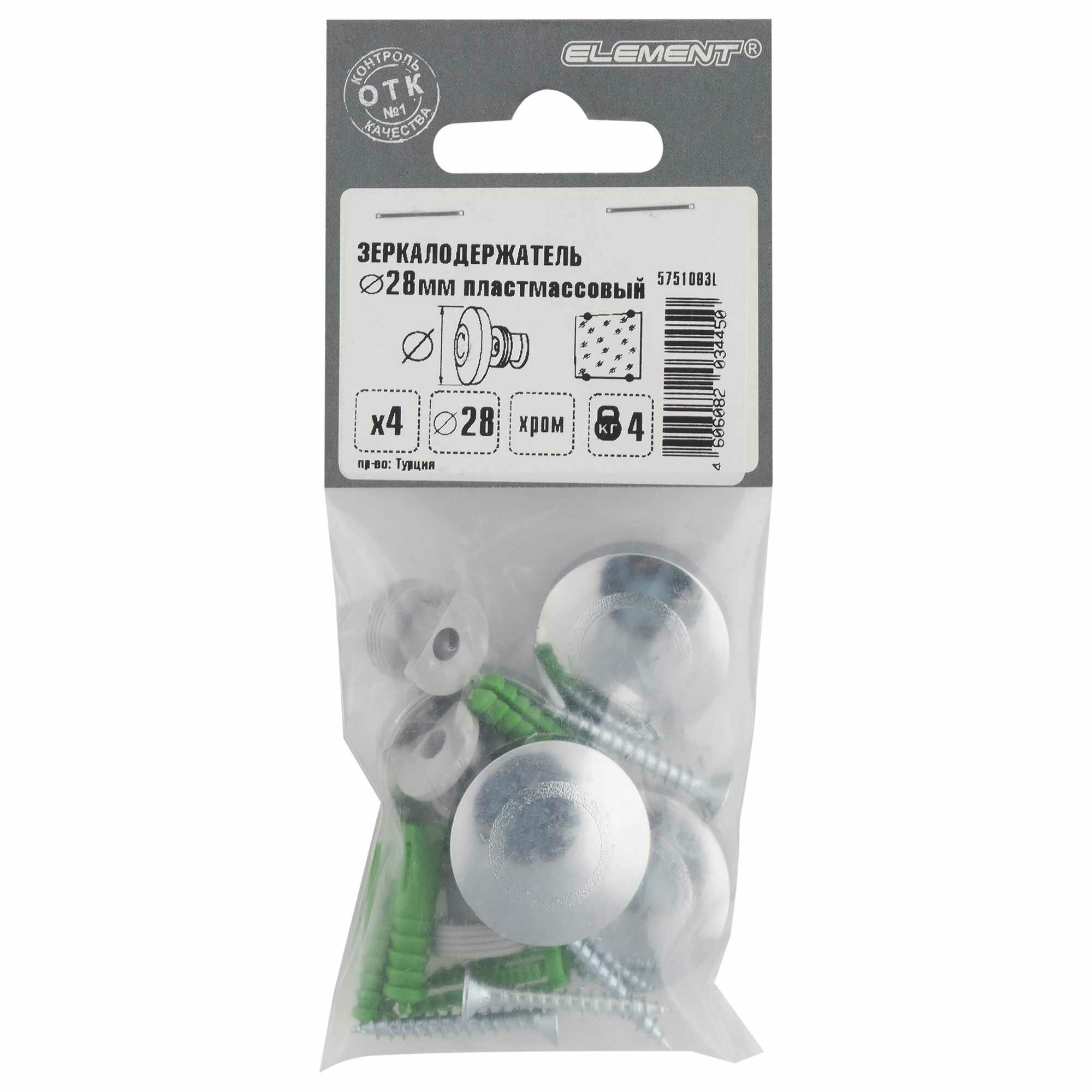 Зеркалодержатель диаметром 28 мм цвета «хром» – качественный товар, изготовленный из пластмассы. Такой материал обеспечивает изделию не только долговечность и прочность, но и привлекательный вид. Преимущества: - имеет незначительный вес (всего 24 грамма) и при этом хорошо переносит большую нагрузку; - фасуется в упаковки по 4 штуки; - быстро и легко монтируется, поэтому мастеру потребуются стандартные инструменты.