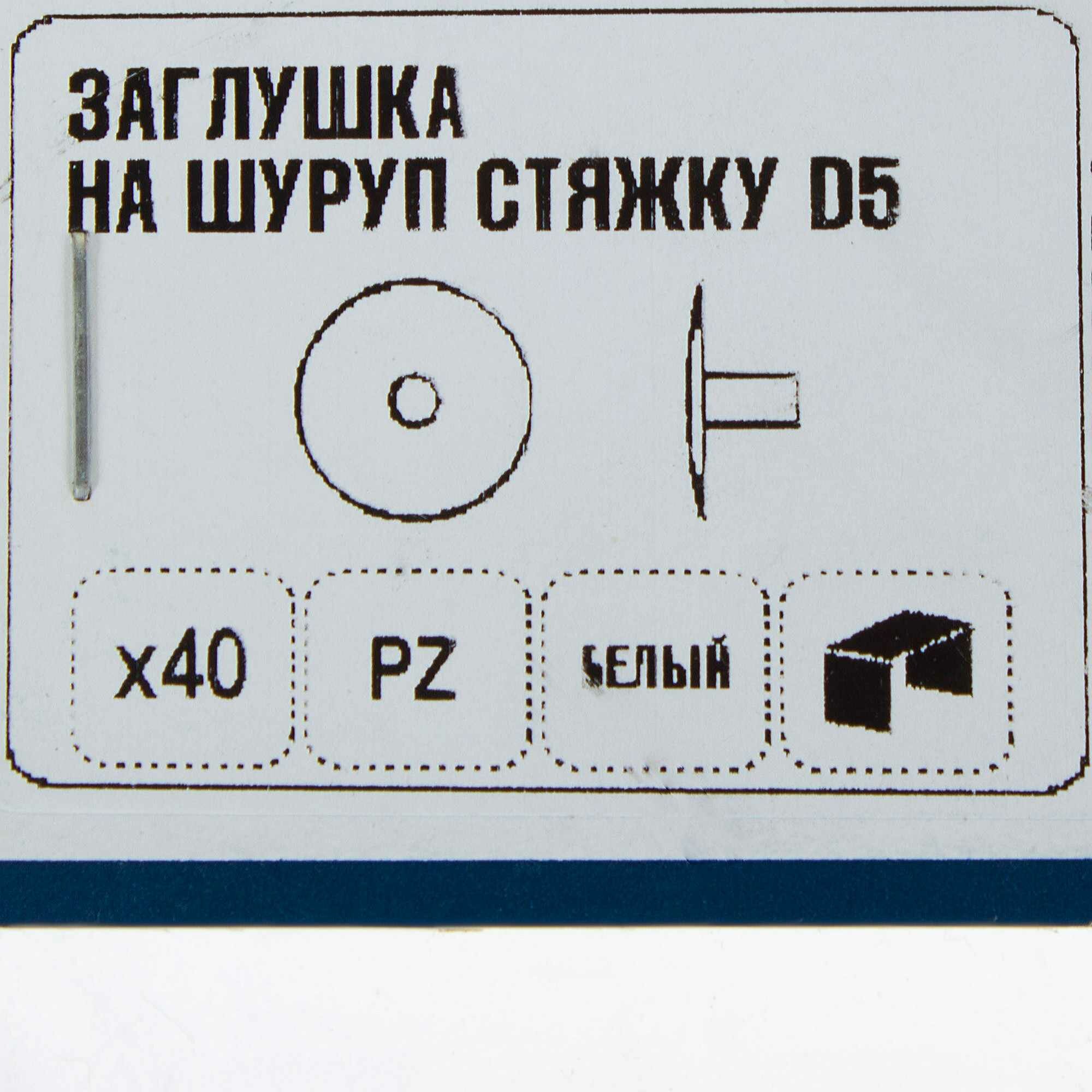 Заглушка на шуруп-стяжку PZ 5 мм полиэтилен цвет белый 40 шт. Леруа Мерлен