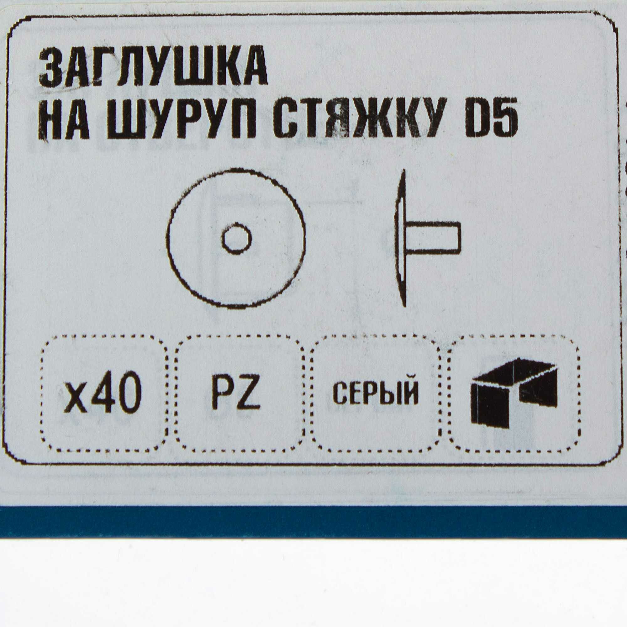 Заглушка на шуруп-стяжку PZ 5 мм полиэтилен цвет серый 40 шт. Леруа Мерлен